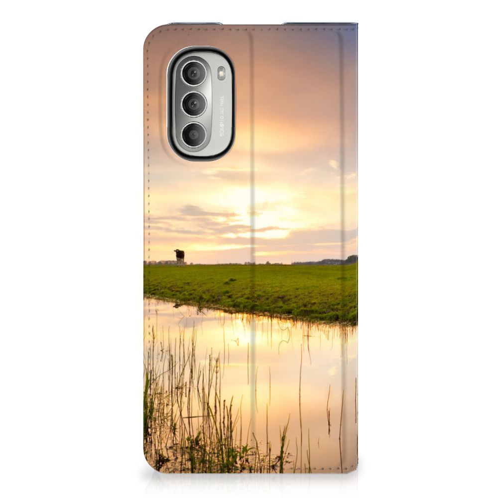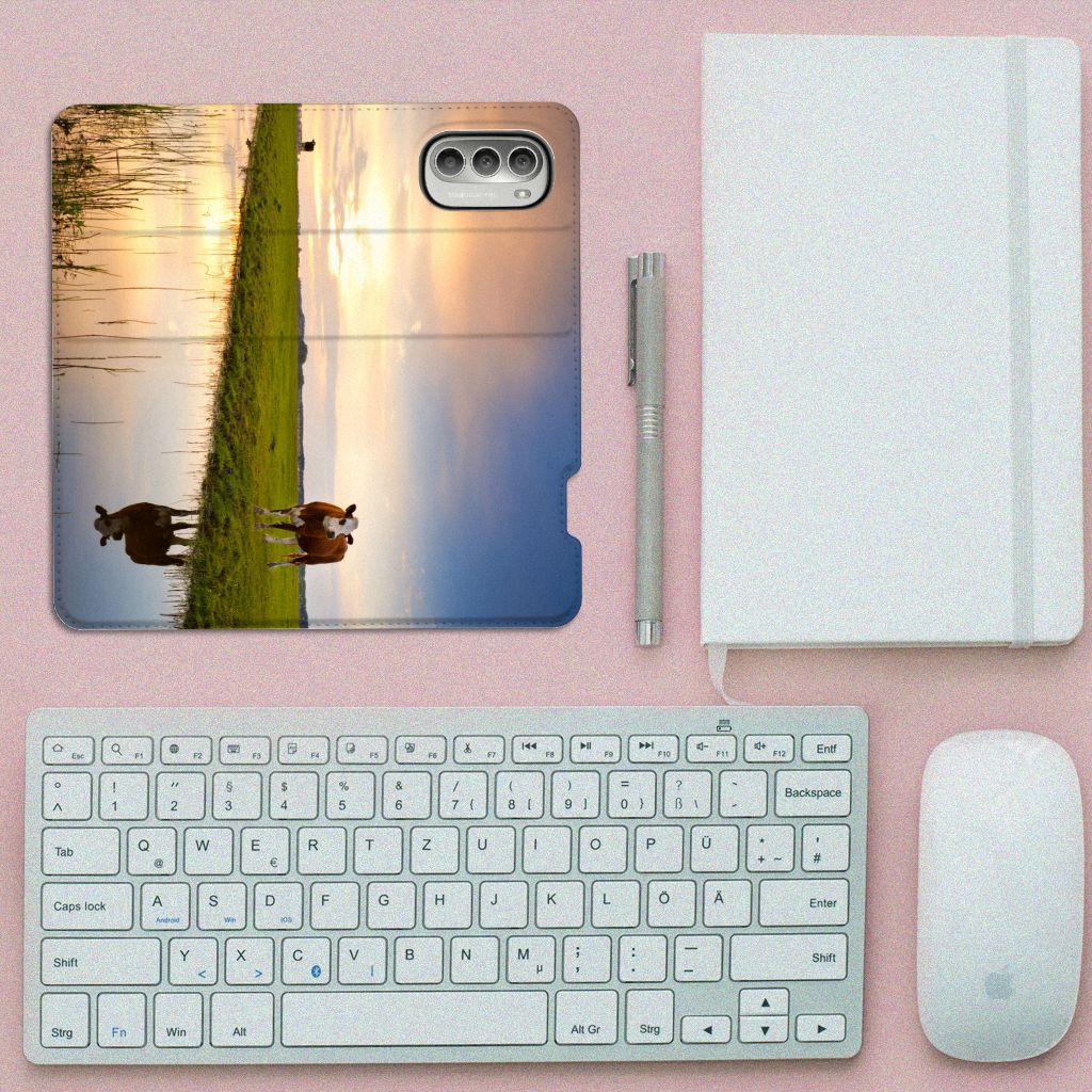 Het levert een idyllisch plaatje op, dit hoesje met een koe en ondergaande zon op de achtergrond. Door een koe buiten te laten lopen en grazen, hebben ze minder kans om ziek te worden. De Koe graast het liefst met soortgenoten, al zijn deze een stukje van de koe op de case verwijderd. Dit levert ook een mooi plaatje op, zoals je kunt zien op dit design hoesje. Deze stand case ziet er strak uit en is voorzien van verschillende uitsparingen. Een Motorola Moto G51 5G Hoesje maken met magneet aan de binnenzijde beschermt jouw smartphone overal. Alle zijden zijn bedrukt. Koeien hebben lange graasperioden nodig, afgewisseld door rust- en herkauwperioden. Zo goed als grazen voelt voor koeien, zo lang zal jouw design hoesje meegaan. De binnenkant van de stand case is van TPU, de buitenzijde van leer.