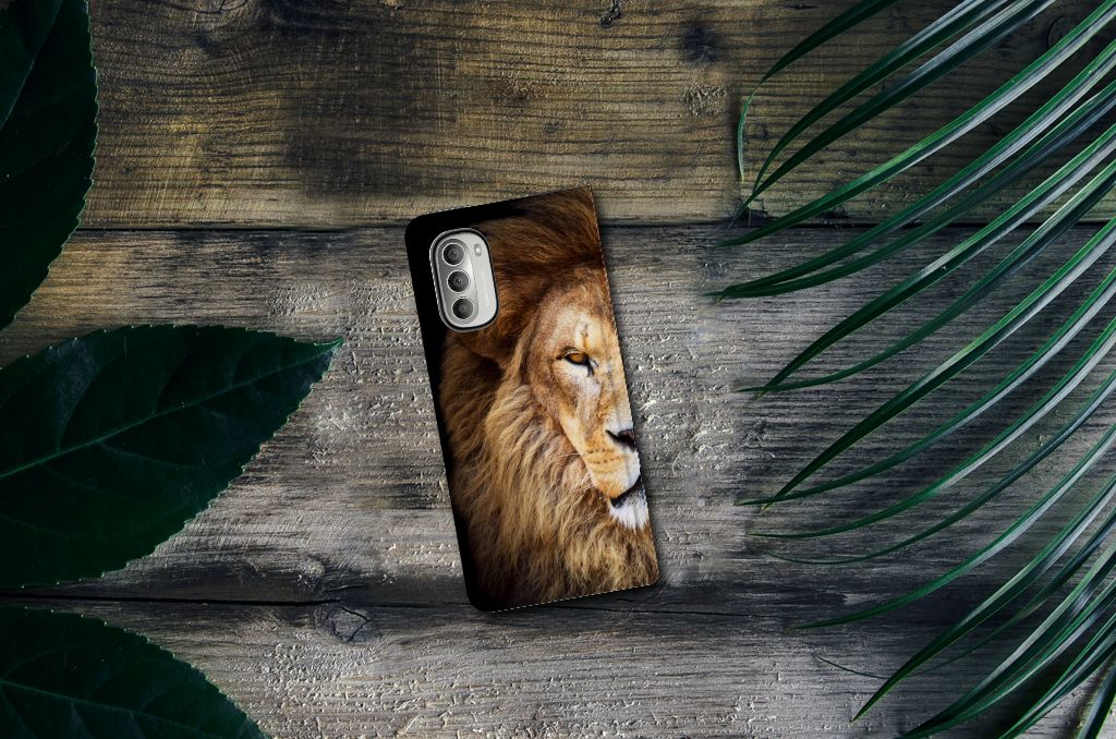 We hebben een grote verzameling katten op onze hoesjes staan, waarvan de leeuw na de tijger de grootste is. De Leeuw op het design hoesje ziet er door de indrukwekkende manen bijzonder krachtig uit. De kracht straalt ook af op deze Motorola Moto G51 5G Hoesje maken, die jouw smartphone aan alle zijden perfect beschermt. De magnetische sluiting aan de binnenkant is bijzonder handig en nuttig. Rond het begin van de jaartelling had de leeuw een veel grotere verspreiding dan nu. De afgelopen 20 jaar is het aantal leeuwen met 30 tot 50% afgenomen. Zonde natuurlijk. Dit design hoesje met leeuw zal in elk geval nooit verloren gaan. De print op deze case is zeer duurzaam. Jouw smartphone past perfect in de houder van TPU aan de binnenzijde, waarin je ook een pasje kunt stoppen. Verder heeft de case een standaard.