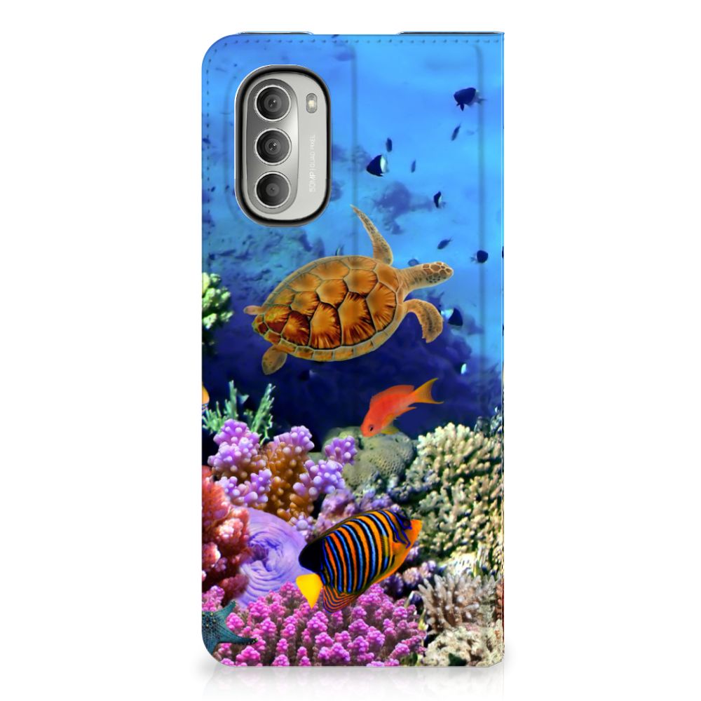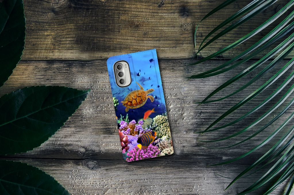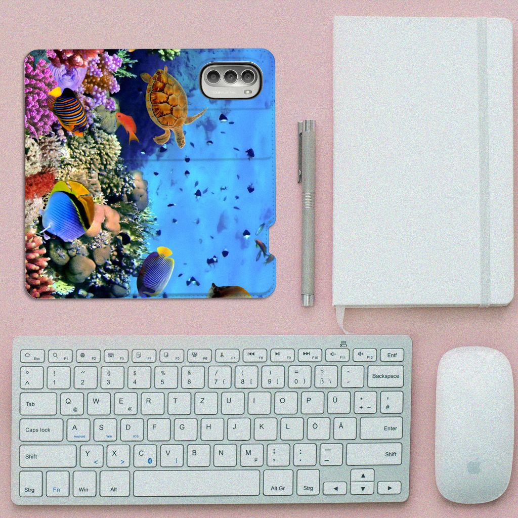 Dit kleurrijke hoesje met tropische Vissen is een ware eyecatcher. Als je aan het duiken bent en je treft een school aan met dit soort opvallende vissen, dan heb je een geweldige ervaring. Maar je hoeft er eigenlijk niet per se het water voor in te duiken. Want wij hebben een schitterende verzameling vissen op dit design hoesje gezet. Met onze zeer geavanceerde printer zetten we de afbeelding van vissen op alle zijden van de Motorola Moto G51 5G Hoesje maken. De case heeft aan de binnenkant een vakje waarin je jouw creditcard of ander pasje kwijt kunt. Ga je een dagje vissen, dan hoef je de portemonnee dus ook niet op zak te hebben. Verder is je telefoon natuurlijk maximaal beschermd met deze stand case met print van tropische vissen. De houder aan de binnenzijde van het design hoesje met vissen print is van TPU.