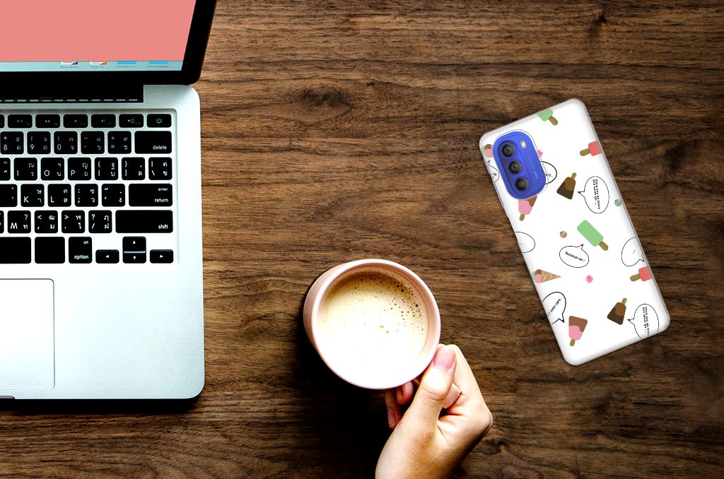 Van deze vrolijke Motorola Moto G51 5G Siliconen Case met daarop verschillende soorten ijsjes met tekstwolkjes krijg je sowieso een vrij en zomers gevoel. De zomer komt naar je toe met deze print van ijsjes met tekstwolkjes. Ben je op het strand, dan ontbreekt een lekker ijsje natuurlijk niet. Net zoals je je smartphone bij de hand hebt, met daaromheen een design hoesje met bijzondere ijsjes en tekstwolkjes. Jouw telefoon kan dan de bescherming in de vorm van een tpu hoesje met ijsjes zeer goed gebruiken. De bovenkant van dit hoesje wordt bedrukt met ijsjes en tekstwolkjes, de zijkanten blijven doorzichtig. De case is gemaakt van schokabsorberend materiaal en past altijd in je broekzak. Onder alle weersomstandigheden zal deze TPU case perfect functioneren, ook in de zomer met een ijsje in je hand.