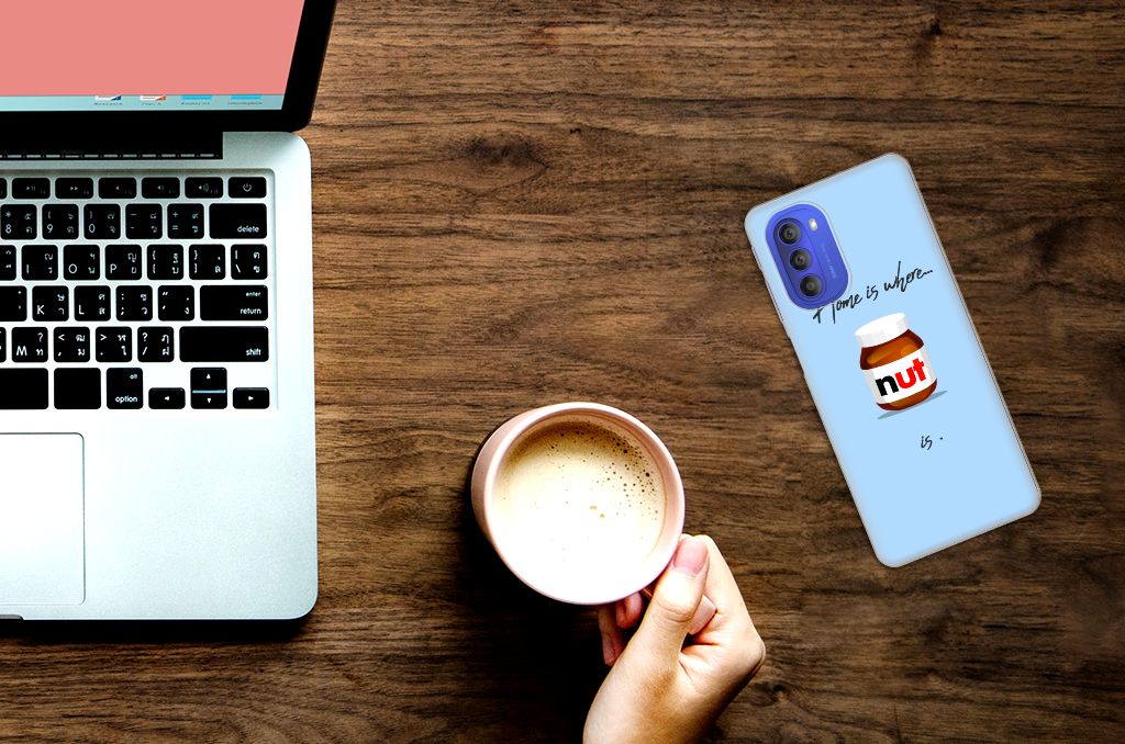 Ben je liefhebber van chocoladepasta, dan is dit het perfecte Motorola Moto G51 5G Siliconen Case voor jou. De chocoladepasta is enorm populair, dus is het niet zo heel gek dat je een ‘Nut Home’ tpu case in een blauwe kleur aantreft in ons assortiment design hoesjes met illustraties. Dit tpu hoesje is zeer flexibel en past altijd in je broekzak. Alleen de bovenkant van dit hoesje wordt door ons bedrukt in blauwe kleur met de pasta, op zeer duurzame manier. Mensen die houden van de bekendste pasta van het moment, kiezen voor deze blauwe tpu case. Er staan geen illustraties op de zijkanten van een tpu case. Je kunt ook een eigen tekst toevoegen aan het opvallende design.