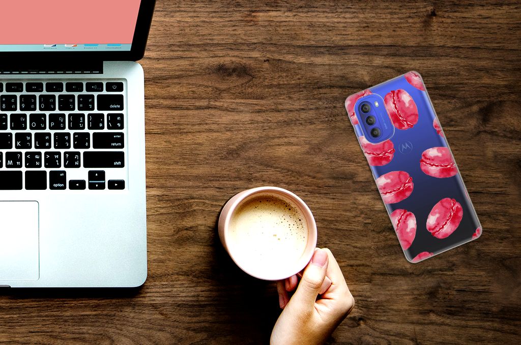 Dit tpu hoesje met Pink Macarons is een zeer opvallende bescherming voor jouw smartphone. Macarons zijn Franse koekjes: kleine, rond en luchtig. Ze worden in veel verschillende smaken gemaakt, herkenbaar aan de verschillende kleuren zoals chocolade (donkerbruin), mokka (middenbruin), kersen (rood), pistache (groen), aardbei (roze), framboos (karmijn). Deze kleuren kun je niet allemaal zien op dit fraaie design hoesje met roze macarons. Heb je altijd al een Motorola Moto G51 5G Siliconen Case willen hebben met roze macarons? Grijp dan nu je kans. Deze case heeft zeer veel goede eigenschappen, zoals elastisch vermogen, flexibiliteit en schokbestendigheid. Dit design hoesje met roze macarons wordt aan de bovenkant bedrukt, de zijkanten blijven doorzichtig. De case heeft opstaande randen aan de voorzijde en beschermt samen met een screenprotector jouw telefoon perfect. De case heeft ook een handige standaard.