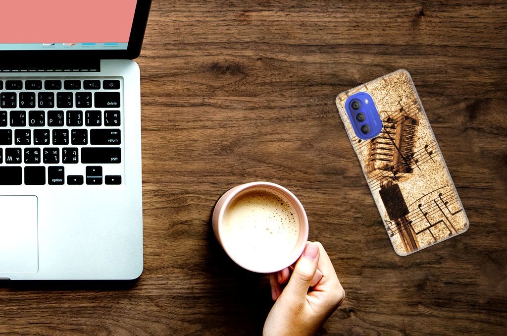 Ben je muzikant, dan is dit design hoesje met Bladmuziek wellicht echt iets voor jou. Met de intrede van nieuwe media wordt de rol van papieren bladmuziek teruggedrongen. Steeds vaker treft men 'bladmuziek' op een beeldschermapparaat, zoals een tablet-pc, e-reader of iPad aan. Gelukkig maar, want als er geen nieuwe media zouden zijn, hadden wij ook nooit onze Phone Case Designer kunnen ontwerpen. Met deze unieke ontwerpmodule kun je jouw favoriete band of artiest op je smartphone hoesje zetten, maar je kunt ook gaan voor dit prachtige design hoesje met print van bladmuziek. Het design staat op een Motorola Moto G51 5G Siliconen Hoesje met foto. Deze case beschermt jouw telefoon vooral aan de achterzijde en zijkanten en is zeer flexibel. Het hoesje blijft aan de zijkanten transparant, de bovenkant is geheel bedrukt. TPU is onbreekbaar materiaal, dat zeer schokabsorberend is. Het hoesje past altijd in je broekzak en combineert uitstekend met een screenprotector.