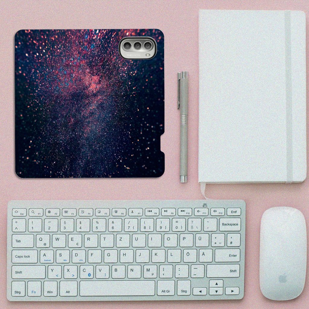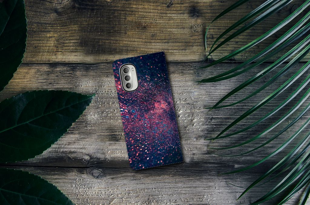 Je waant je in de zevende hemel met dit kunstzinnige, glitterachtige design hoesje met paarse en blauwe kleuren tegen een inktzwarte achtergrond. Het smartphone hoesje heeft ook een wat science fiction achtige allure. Met deze design Stars case zul je zeker opvallen. Als dit je bedoeling is, bestel dat snel dit waanzinnig mooie product voor je Motorola Moto G51 5G. Het telefoonhoesje is van alle gemakken voorzien en combineert een hele fraaie uitstraling met maximaal comfort. Bovendien is het gemaakt van zeer stevig en flexibel materiaal. Het unieke design, door B2C Telecom ontworpen, staat op een Stand Case. Deze case beschermt jouw telefoon aan alle kanten en beschikt over een 1 opbergvakje en een speciale standaard. Het hoesje wordt afgesloten met een magneet aan de binnenzijde. De houder aan de binnenzijde is van TPU.