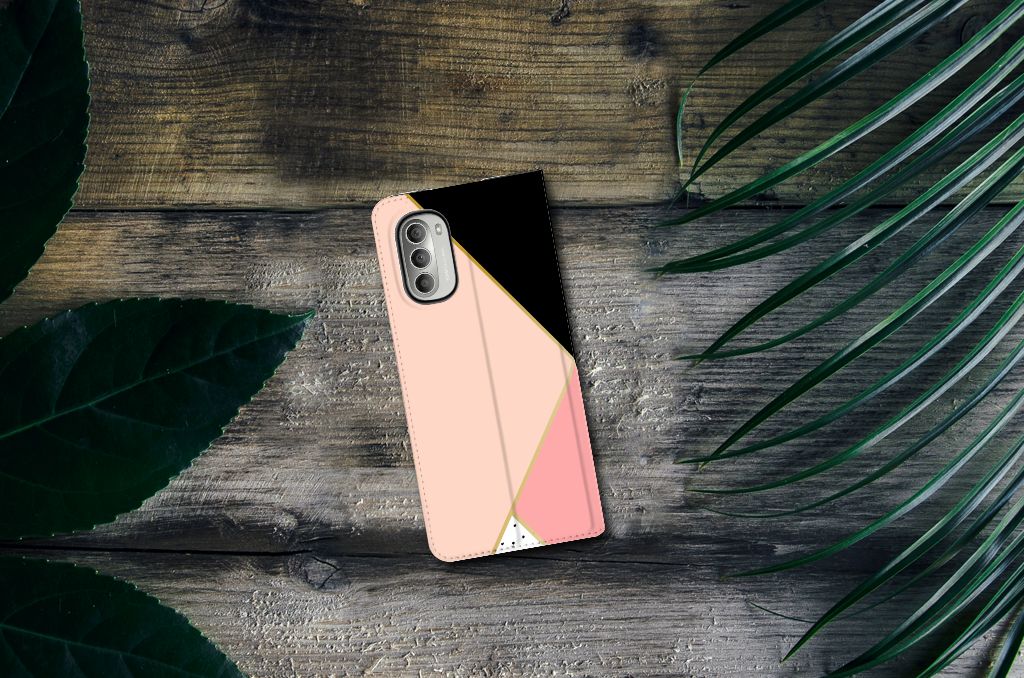 Motorola Moto G51 5G Print Stand Case Zwart Roze Vormen