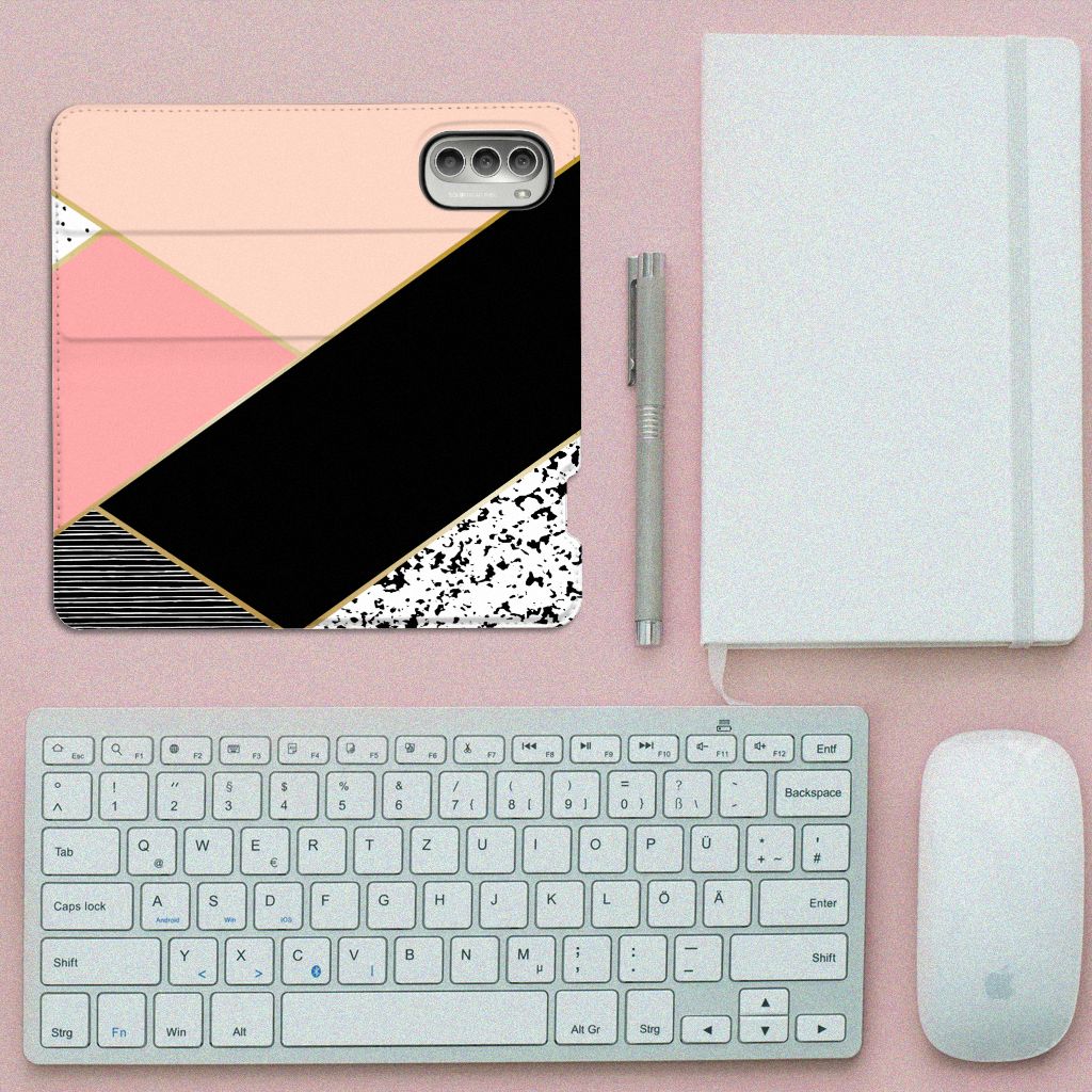 Aan design Standcase Motorola Moto G51 5G met mooie vormen en figuren geen gebrek in onze uitgebreide collectie. Wat dacht je van dit design stand case met Black Pink Shapes. Deze stand case met roze, zwarte en witte vlakken is zo’n beetje de veiligste case die er bestaat. Een Motorola Moto G51 5G Stand Case met print zorgt voor een volledige bescherming van je smartphone en wordt aan alle zijden bedrukt met roze, zwarte en witte vlakken. Wij adviseren om dit hoesje in combinatie met een screenprotector te gebruiken voor een langere levensduur van je telefoon.