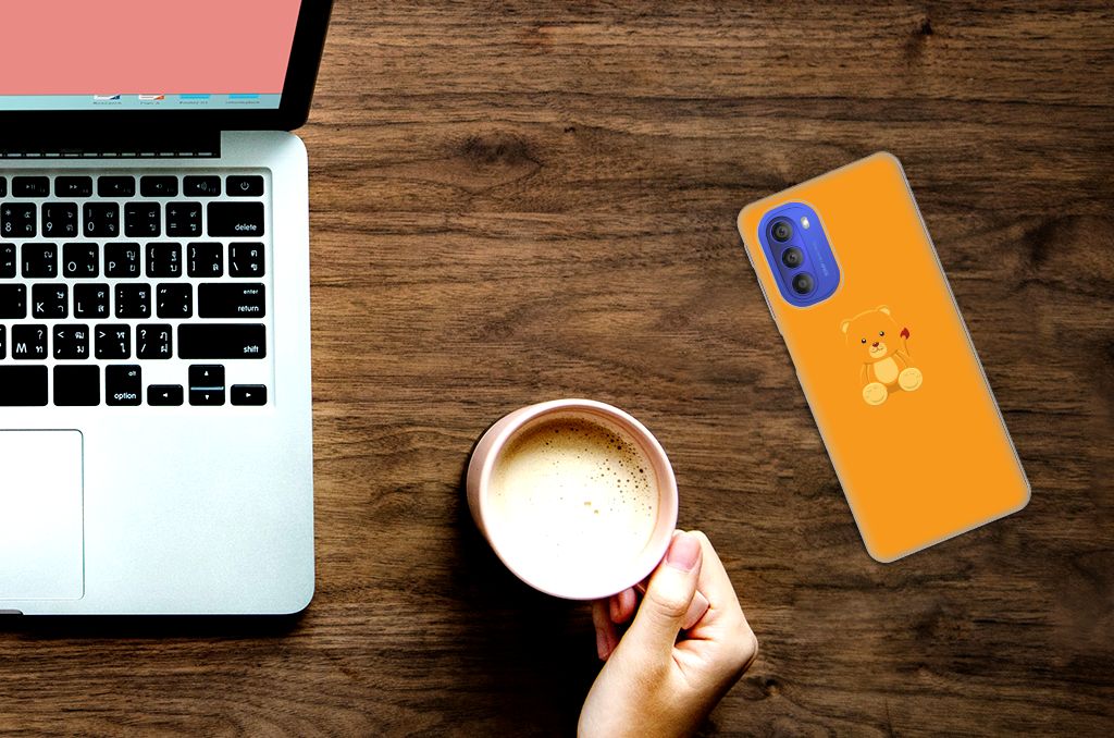Dit vrolijke teddybeertje zou je het liefst willen knuffelen. Dat wordt lastig, op een telefoonhoesje. Maar dat betekent niet dat dit design niet evengoed onwijs schattig is. Het ontwerp is vanwege de oranje achtergrondkleur evengoed subtiel. Dit Baby Beer-design is perfect voor de knuffelberen onder ons. Dit design staat op een Telefoonhoesje met Naam voor je Motorola Moto G51 5G. TPU is flexibel en onbreekbaar. Zo is je telefoon aan de achterkant en de randen heel goed beschermd. De case is aan de bovenkant bedrukt, de randen blijven transparant. Het TPU-hoesje is perfect te combineren met een screenprotector, zo zijn je telefoon en je beeldscherm perfect beschermd.