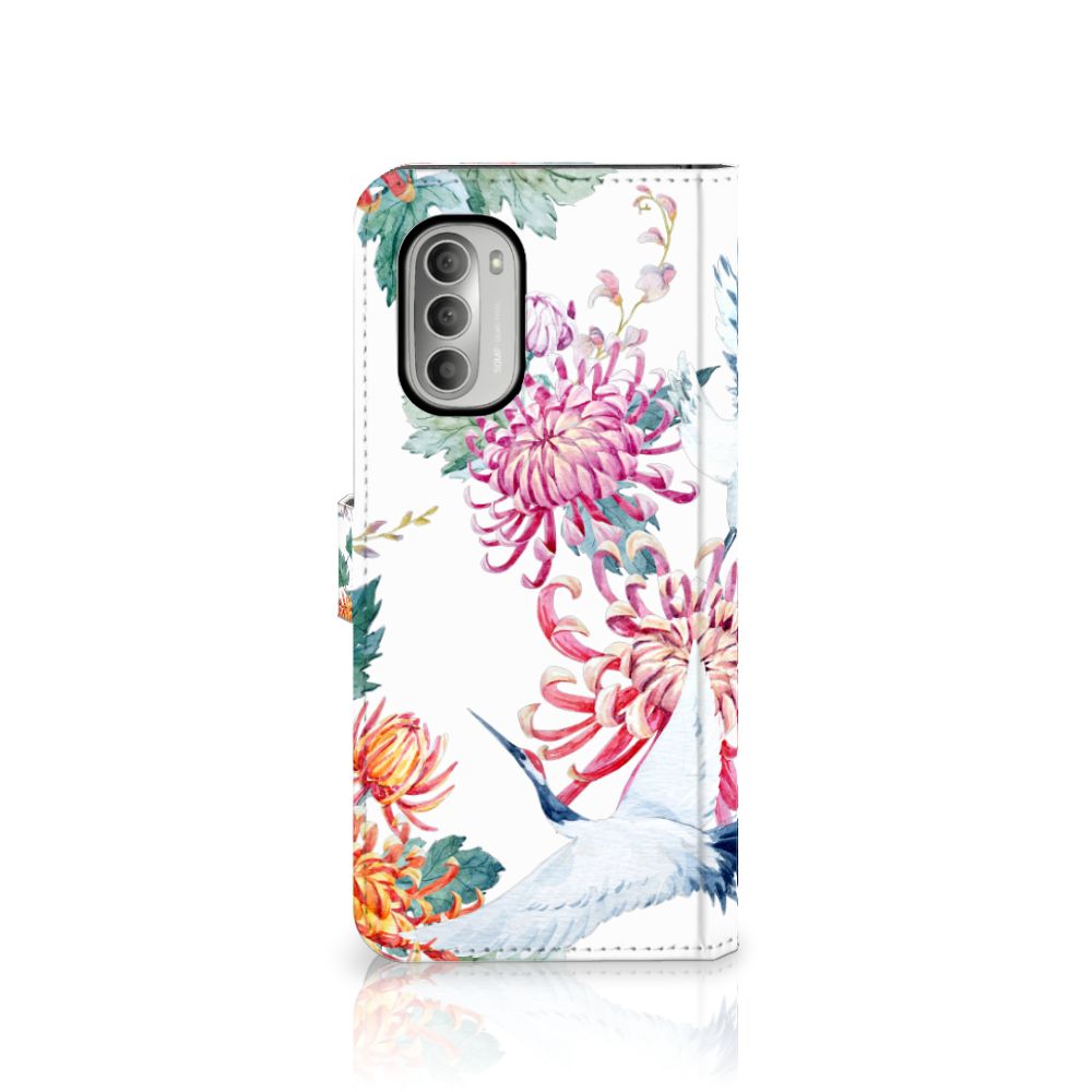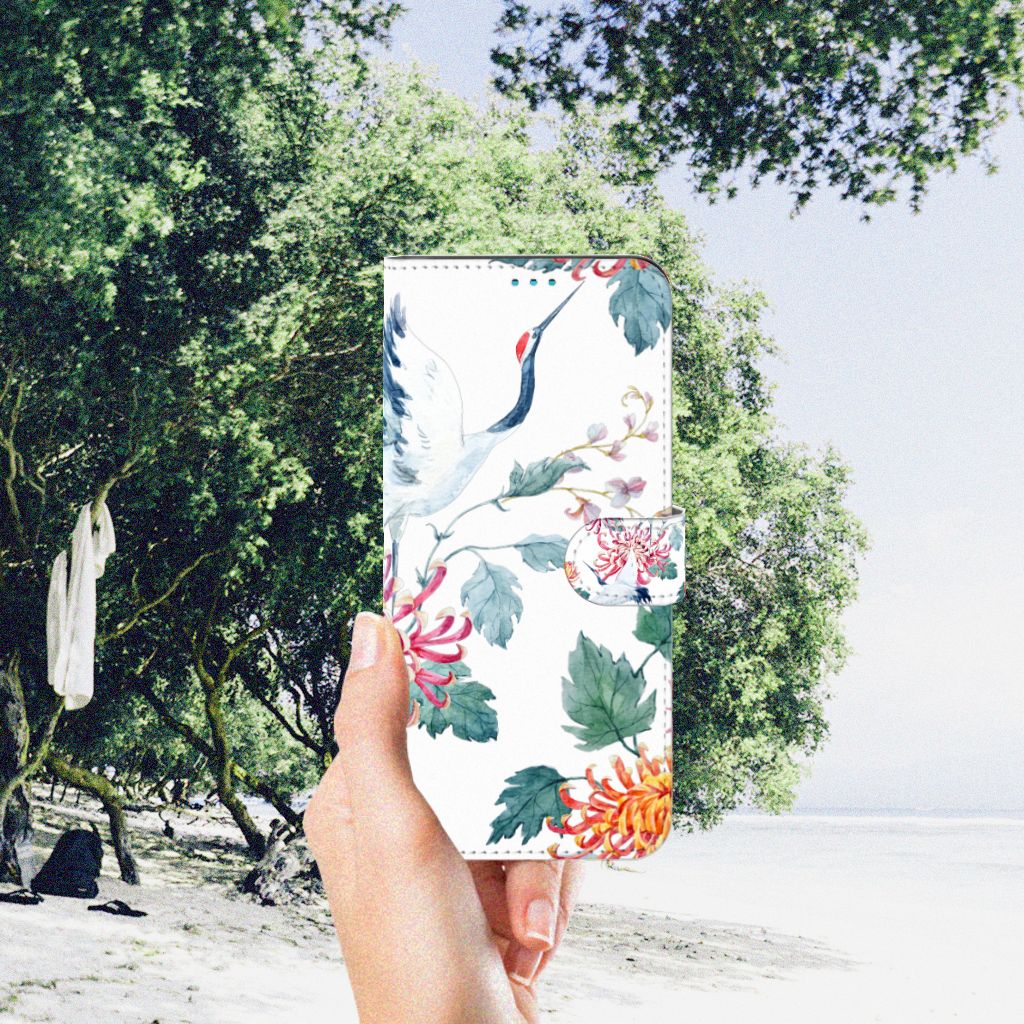 Motorola Moto G51 5G Telefoonhoesje sluit met magnetische lipje Bird Flowers