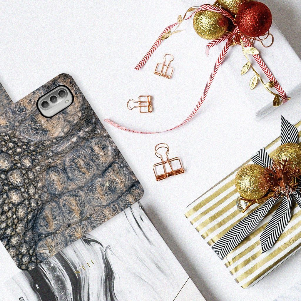 Motorola Moto G51 5G Telefoonhoesje met Pasjes Krokodillenprint