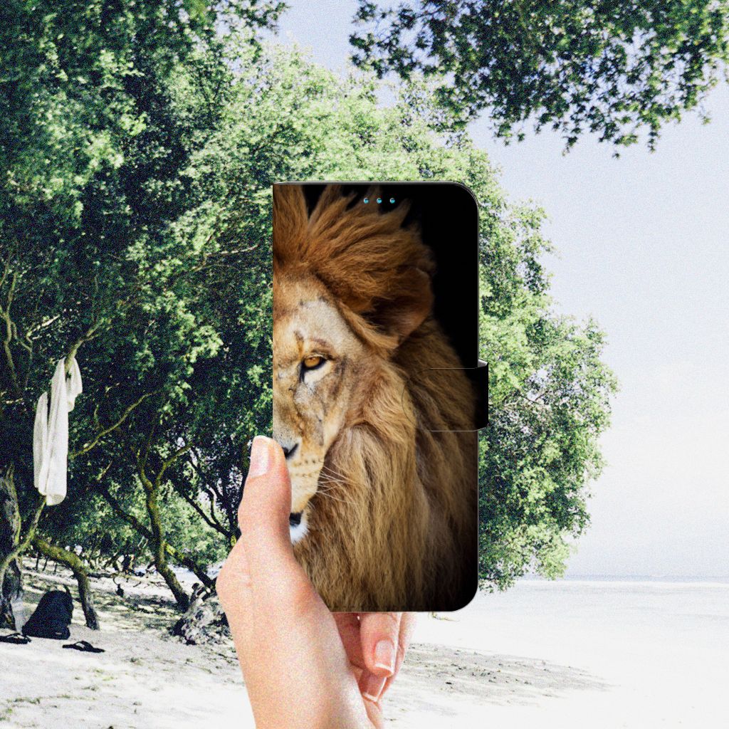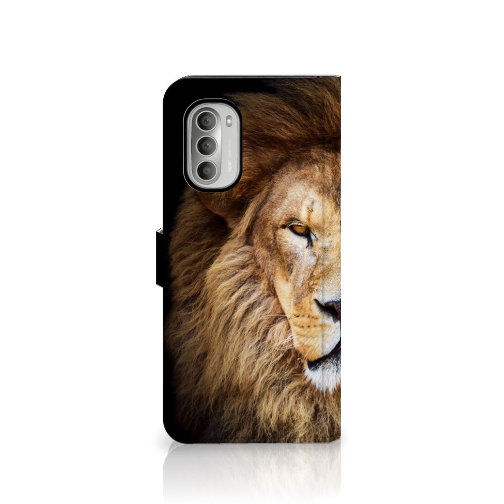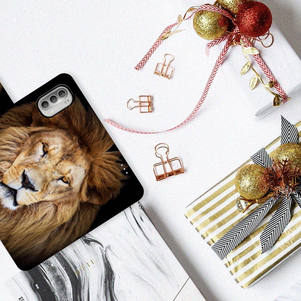 Motorola Moto G51 5G Telefoonhoesje met Pasjes en met magnetische sluitclip Leeuw