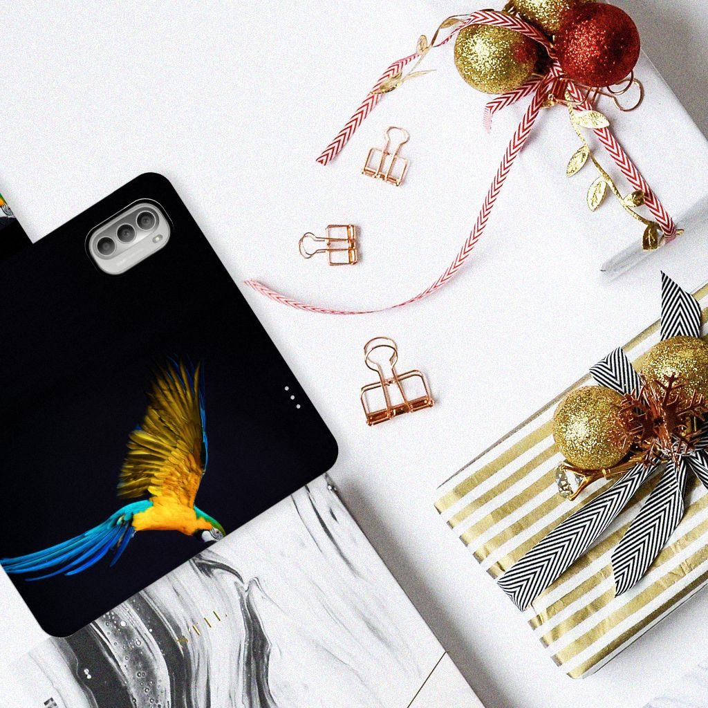 Motorola Moto G51 5G Telefoonhoesje met ruimte voor 3 pasjes Papegaai