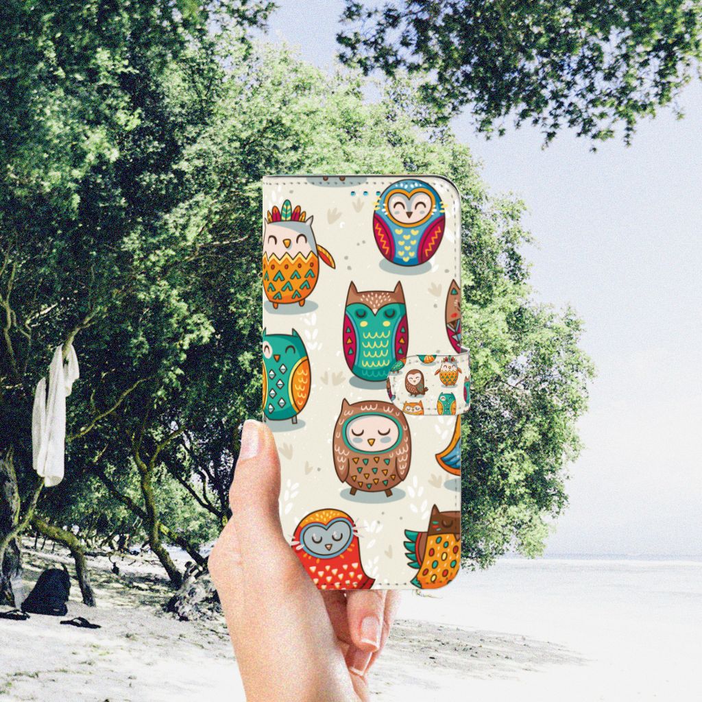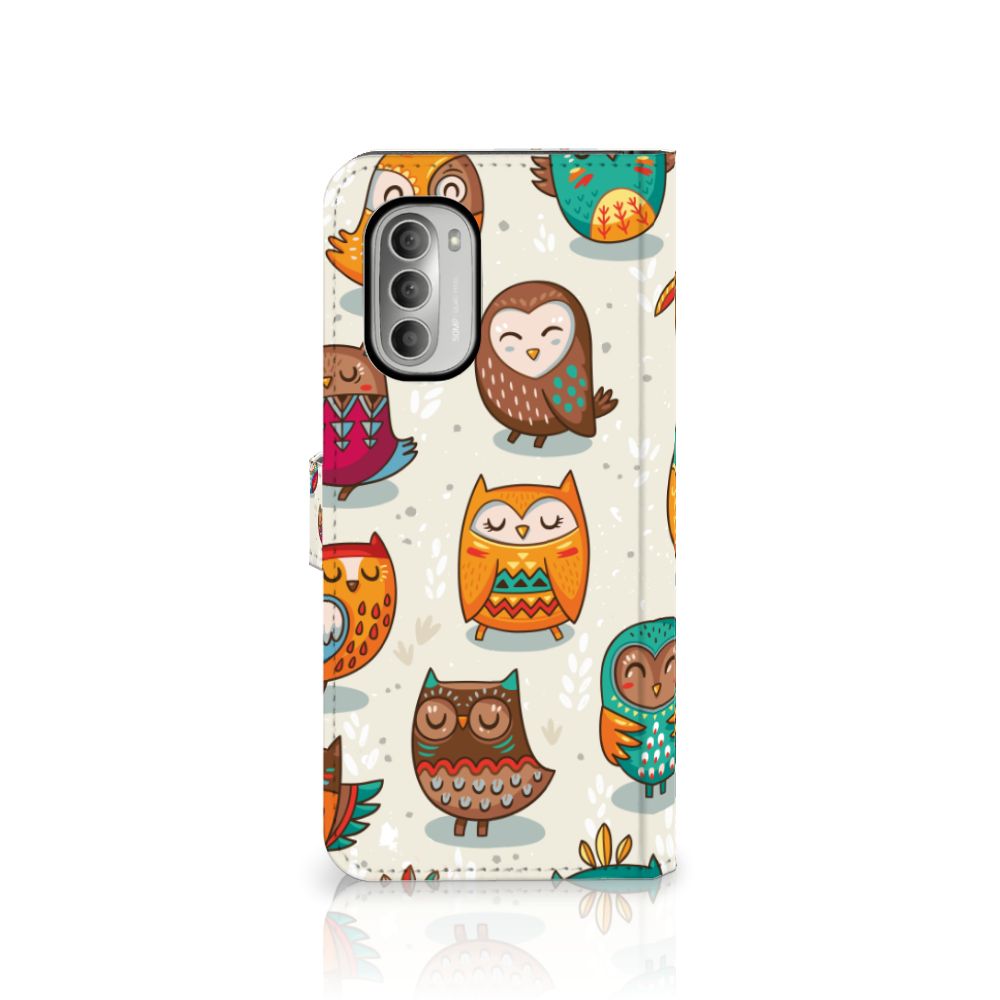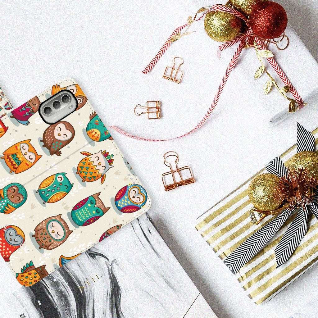 Motorola Moto G51 5G Telefoonhoesje met ruimte voor drie pasjes Vrolijke Uilen