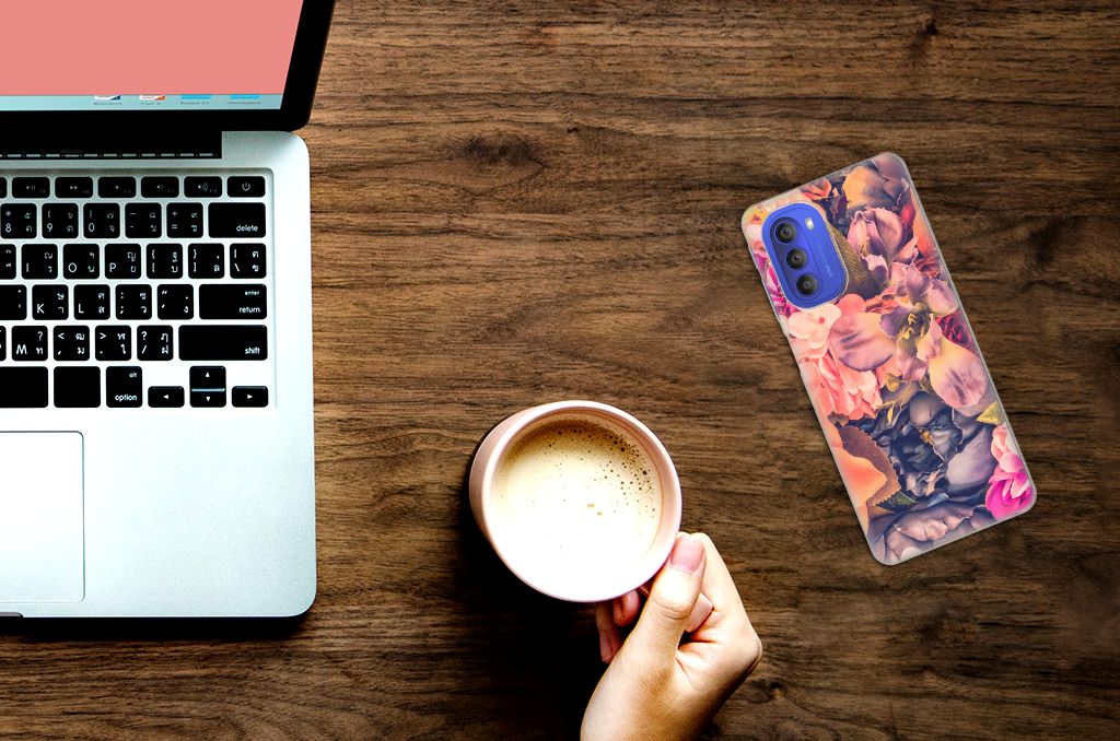 Dit Bosje Bloemen doet een mens en zijn smartphone goed. De oranje, paarse en roze bloemen op deze Motorola Moto G51 5G TPU Case geven jouw smartphone een zeer sierlijke uitstraling. Je wordt er ook meteen vrolijker van als je aan het appen, mailen of aan het bellen bent. Valt dan je telefoon op de grond, dan zal er dankzij de tpu case met oranje, paarse en roze bloemen geen schade ontstaan. Helemaal niet als je er een screenprotector bij hebt gekocht. Onze tpu cases met oranje, paarse en roze bloemen zien er zeer prettig uit en zijn heel praktisch, getuige onder meer de opstaande randen en het flexibele materiaal. Alleen de achterkant van de tpu case wordt bedrukt met oranje, paarse en roze bloemen. Op deze tpu case is het ook mogelijk je eigen ontwerp te zetten. In no time ontwerp je zelf een tpu case met daarop foto’s van jouw favoriete bloemen.