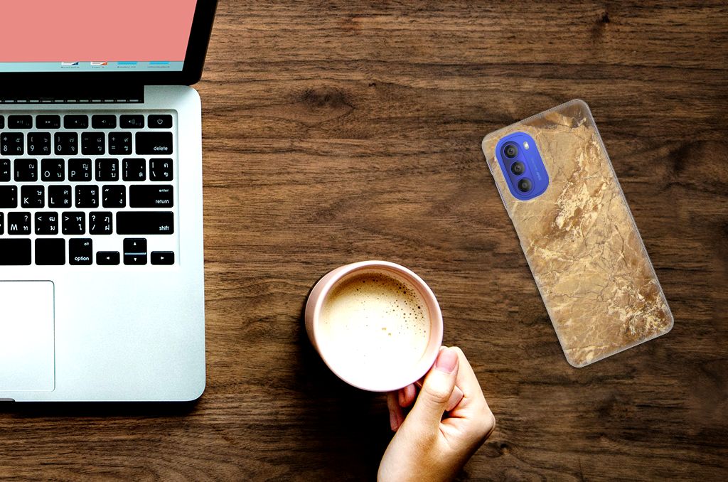 Dit design hoesje met Marmer in lichtbruine kleur is voor de artistiekelingen onder ons. De Grieken en Romeinen wisten het marmer al te waarderen door het in de bouw toe te passen. Naast het witte marmer zijn de diverse soorten marmer in een gevarieerde kleurensamenstelling te krijgen. We hebben verschillende mooie kleuren op design hoesjes gezet, zoals in dit geval het lichtbruine marmer. Dit is een Motorola Moto G51 5G TPU Siliconen Hoesje met marmer in lichtbruine kleur. Het marmer wordt bedrukt op de voorkant van een tpu case, die beschikt over opstaande randen aan de voorkant en heel goed combineert met een screenprotector van glas of van folie. Door de rijkdom aan kleuren en varianties in afwerking kunnen ontwerpers met marmer schitterende architectonische projecten realiseren. Wij hebben hetzelfde gedaan en onze ontwerper veel vrijheid geboden. Het resultaat zie je terug in deze tpu case met lichtbruin marmer, die jouw smartphone goed beschermt. De zijkanten van de case worden niet bedrukt met het lichtbruine marmer.