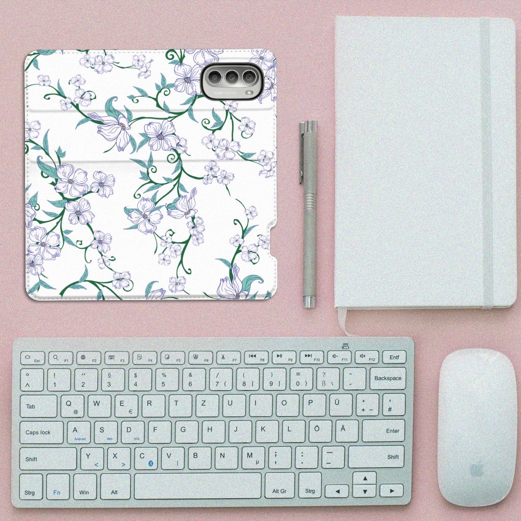 Witte bloemen staan voor puurheid, frisheid, helderheid en eenvoud. Geen wonder dus dat ze al heel lang populair zijn en ook prachtig staan op een telefoonhoesje. Niet iedereen houdt immers van kleurrijke designs. Toch graag bloemetjes op je Smart Cover maar zonder bonte kleuren? Dan is dit hoesje voor de Motorola Moto G51 5G perfect voor jou. Dit populaire smartphonehoesje heeft één vakje voor een pasje of briefgeld en is aan alle zijden bedrukt. Met de standcase zet je je telefoon gemakkelijk neer, zodat je je handen vrij hebt als je bijvoorbeeld een video wilt kijken. De binnenkant van de standcase is van grijs PU-leer. Dat is fijn, omdat je daardoor niet snel vlekken ziet op je hoesje.