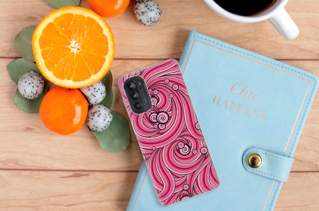 Deze mooie Motorola Moto G52/G82 Hoesje maken met Swirl Pink is een geweldige en duurzame bescherming voor jouw smartphone. De kleuren zijn zeer subtiel op het hoesje gezet en worden op de bovenkant van de case bedrukt. Dit drukwerk doen we in eigen beheer, zodat het roze en het zwart ook uitstekend tot zijn recht komen op de tpu case. Een tpu hoesje is perfect op maat gemaakt en heeft een mooie uitstraling. Daarnaast is de case zeer flexibel en het materiaal is onbreekbaar. De case heeft opstaande randen ter bescherming van het scherm. De randen van het tpu hoesje worden niet in roze met zwart bedrukt. Nergens tref je een hoesje met deze kleuren aan dat zo goed past bij jouw smartphone.