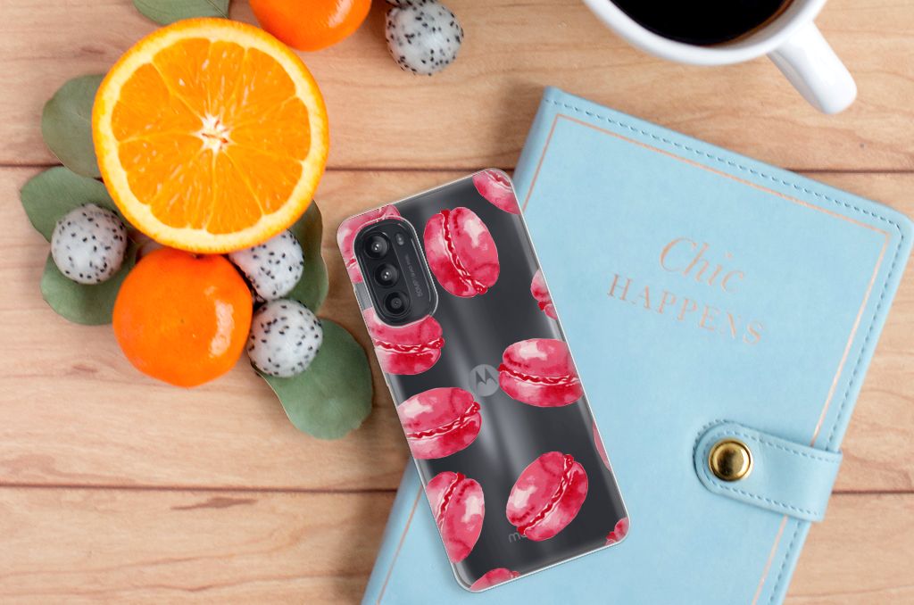 Dit tpu hoesje met Pink Macarons is een zeer opvallende bescherming voor jouw smartphone. Macarons zijn Franse koekjes: kleine, rond en luchtig. Ze worden in veel verschillende smaken gemaakt, herkenbaar aan de verschillende kleuren zoals chocolade (donkerbruin), mokka (middenbruin), kersen (rood), pistache (groen), aardbei (roze), framboos (karmijn). Deze kleuren kun je niet allemaal zien op dit fraaie design hoesje met roze macarons. Heb je altijd al een Motorola Moto G52/G82 Siliconen Case willen hebben met roze macarons? Grijp dan nu je kans. Deze case heeft zeer veel goede eigenschappen, zoals elastisch vermogen, flexibiliteit en schokbestendigheid. Dit design hoesje met roze macarons wordt aan de bovenkant bedrukt, de zijkanten blijven doorzichtig. De case heeft opstaande randen aan de voorzijde en beschermt samen met een screenprotector jouw telefoon perfect. De case heeft ook een handige standaard.