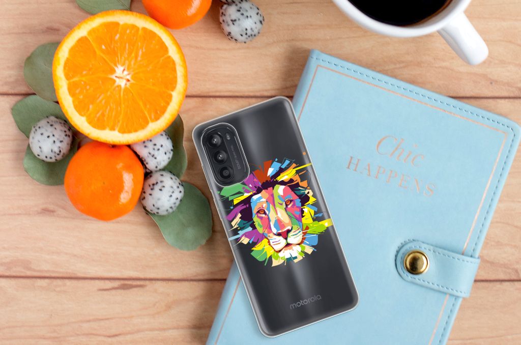 Ben je op zoek naar een uniek telefoonhoesje voor je Motorola Moto G52/G82? Dan ben je bij B2C Telecom aan het juiste adres! Speciaal voor jou hebben we dit prachtige Lion Color design in onze collectie hoesjes opgenomen. Het design wordt bedrukt op een Telefoonhoesje met Naam en is gemaakt van flexibel rubber. Het design wordt alleen aan de bovenkant van het hoesje bedrukt en de randen blijven transparant. Aan de zijkanten zijn uitsparingen gemaakt waardoor je met gemak alle knoppen en poorten kunt bedienen. Wij adviseren om dit hoesje in combinatie met een screenprotector te gebruiken voor een langere levensduur van je telefoon. Wil je dit design hoesje nog iets extra's geven? Voeg dan gratis je naam of een quote toe! Is dit design hoesje toch niet helemaal wat je zocht? Ontwerp dan zelf een hoesje in ons ontwerpprogramma.