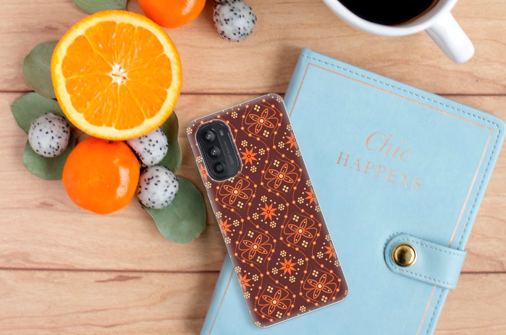 Batikken is een super oude kunstvorm. Met deze methode wordt een geweven stof met verf gedecoreerd. Er zijn stoffen gevonden in het Midden-Oosten en Azië van meer dan tweeduizend jaar oud. Wie had kunnen bedenken dat we zo’n mooie batik-print duizenden jaren later zelfs op telefoonhoesjes zouden terugvinden? Dit TPU bumper in voor je Motorola Moto G52/G82 heeft een prachtig symmetrisch patroon. Door de bruine en oranje kleuren doet het design een beetje retro aan en is het toch subtiel te noemen. Naast het feit dat dit hoesje gewoon erg mooi is, is je telefoon er natuurlijk ook goed mee beschermd. TPU is een zeer sterk maar toch licht en flexibel materiaal en is daarom ideaal voor om je smartphone.