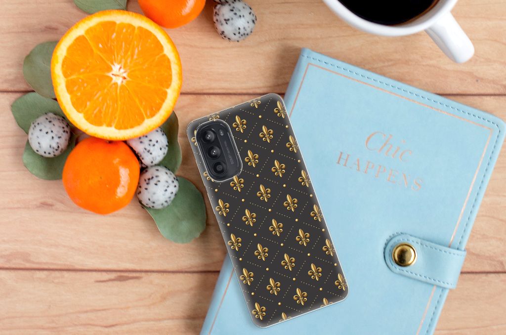 Hét symbool van het Franse koningshuis, de fleur-de-lis (ook fleur-de-lys of Franse lelie), mag natuurlijk niet ontbreken in onze collectie design hoesjes. De naam betekent letterlijk lelie-bloem. Deze Franse Lelie kunnen we op verschillende soorten cases printen, zoals een zeer praktische en onderscheidende tpu case. Een Motorola Moto G52/G82 TPU bumper met Franse Lelie ziet er niet alleen ontzettend chique uit, het is dankzij onder meer het zeer flexibele materiaal zeer praktisch. Het is niet helemaal duidelijk welke bloem model heeft gestaan voor het Franse symbool. Wel is duidelijk dat de Franse lelie volledig tot wasdom komt op deze handige tpu case. We bedrukken de tpu case op het moment dat jij deze bestelt. Op de bovenzijde komt de Franse lelie te staan, de zijkanten blijven transparant.
