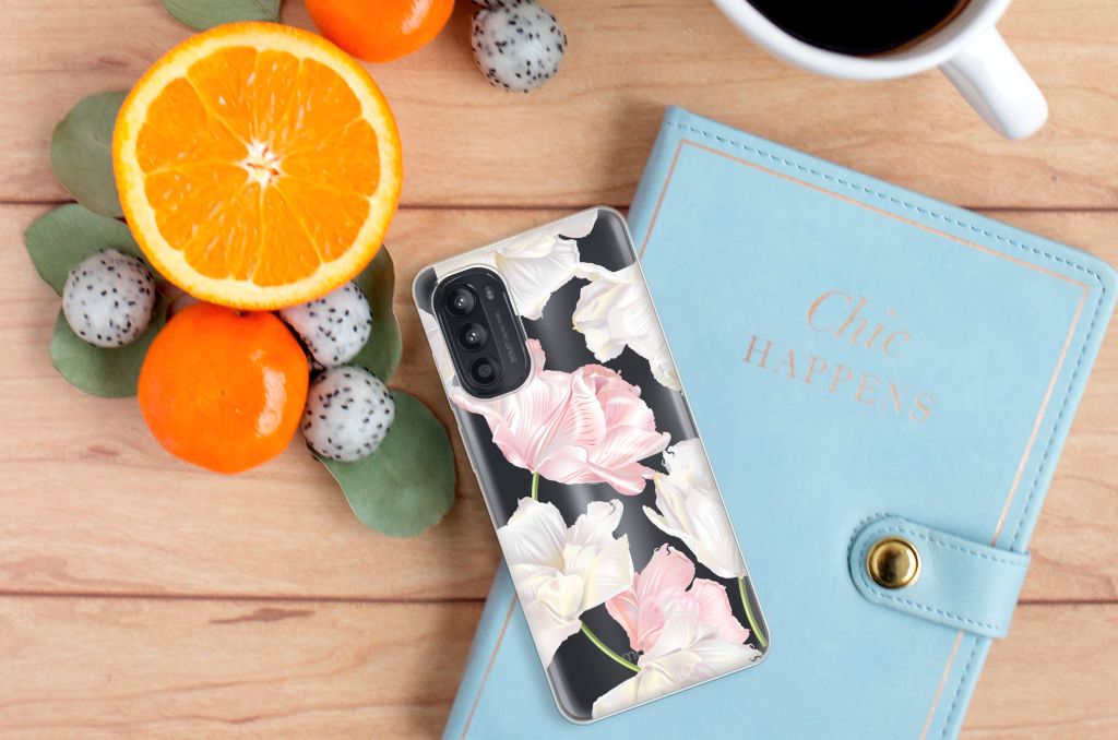 Een bosje bloemen doet een mens (en zijn smartphone) goed. De witte en roze bloemen op deze Motorola Moto G52/G82 TPU Case geven jouw smartphone een zeer mooie uitstraling. Je wordt er ook meteen een stuk rustiger van als je aan het appen of aan het bellen bent. Valt dan je telefoon op de grond, dan zal er dankzij de tpu case met het design Lovely Flowers ontstaan. Helemaal niet als je er een screenprotector bij hebt gekocht. Onze tpu cases met roze en witte bloemen zien er zeer prettig uit en zijn heel praktisch, getuige onder meer de opstaande randen en het flexibele materiaal. Alleen de achterkant van de tpu case wordt bedrukt met roze en witte bloemen. Op deze tpu case kun je trouwens ook een eigen ontwerp zetten. In een paar simpele stappen ontwerp je zelf een stand case met daarop jouw favoriete bloemen.
