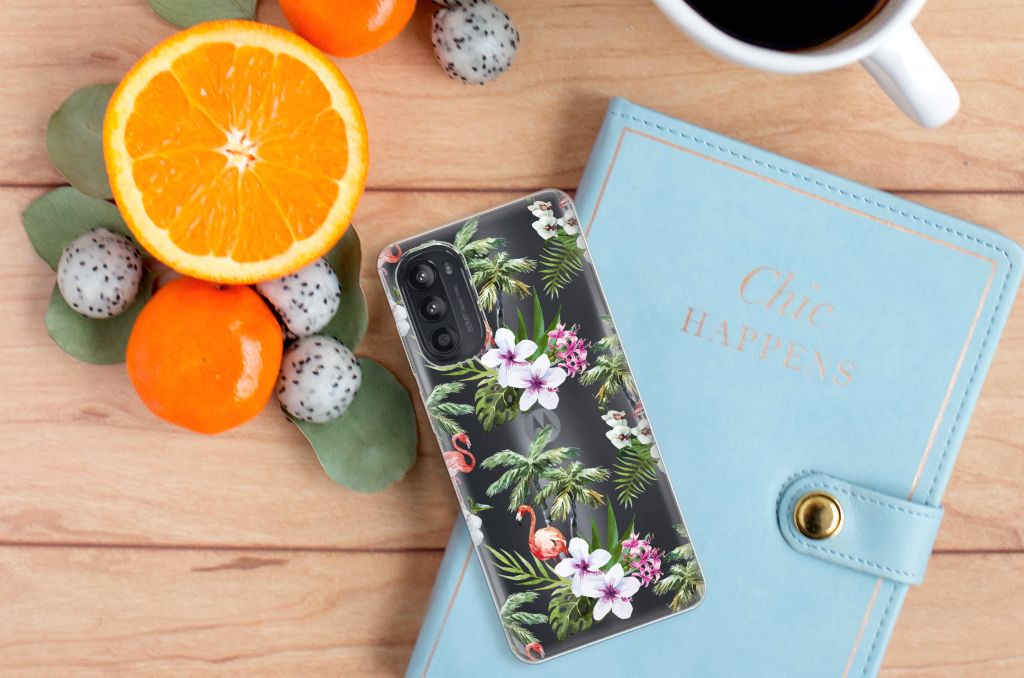 Een Motorola Moto G52/G82 TPU Hoesje met Flamingo Palms is in vele opzichten bijzonder. De rode flamingo op het hoesje kent zijn oorsprong in het Caraïbische gebied. Stel dat je in deze regio vakantie aan het vieren bent, dan val je zonder meer op met dit hoesje met flamingo’s en palmbomen. Deze tpu case beschermt je telefoon met name aan de achterkant en de zijkanten. Deze tpu case met flamingo’s en palmbomen is op maat gemaakt voor jouw smartphone en ligt altijd goed in je hand. De TPU case met flamingo’s en palmbomen en is ook zeer flexibel. De zijkanten van case blijven transparant.