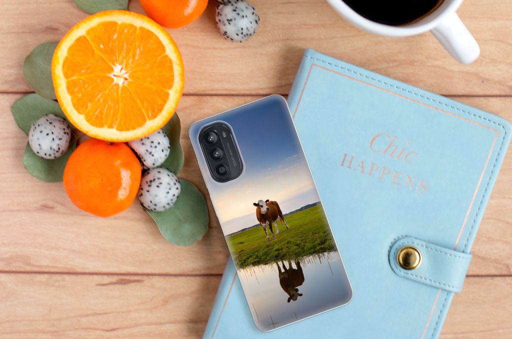 Het levert een idyllisch plaatje op, dit hoesje met een koe en ondergaande zon op de achtergrond. Door een koe buiten te laten lopen en grazen, hebben ze minder kans om ziek te worden. De Koe graast het liefst met soortgenoten, al zijn deze een stukje van de koe op de case verwijderd. Dit levert ook een mooi plaatje op, zoals je kunt zien op dit design hoesje. Dit tpu hoesje met koeien ziet er flexibel uit en is voorzien van alle uitsparingen. Een Motorola Moto G52/G82 TPU Hoesje met koeien beschermt jouw smartphone vooral aan de achterkant en zijkanten. De zijkanten blijven transparant, de rest van het hoesje is bedrukt. Koeien herkauwen het liefst liggend, behalve wanneer het regent. Zo goed als grazen voelt voor koeien, zo duurzaam zal jouw smartphone blijven met dit design hoesje. Het TPU is schokabsorberend en niet te breken. De TPU case past altijd in je broekzak.