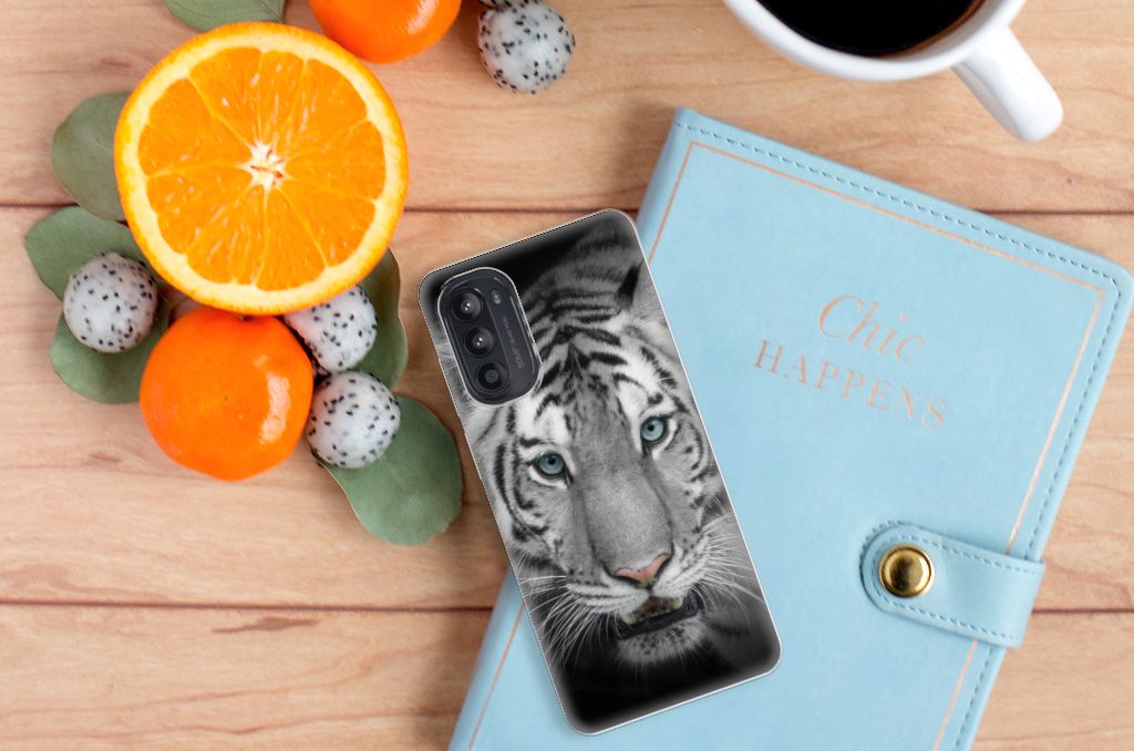 Omdat de Witte Tijger zo bijzonder is, zijn wij bereid deze voor zeer lage kosten op een tpu case te zetten. Dit kunnen we zo goedkoop doen omdat we het drukwerk in eigen beheer doen. Witte tijgers leefden lange tijd in de bossen van India, Bangladesh, Nepal, Bhutan en China en kunnen wel 257 kilo wegen. Dit zwaargewicht kunnen we bedrukken op verschillende soorten hoesjes, zoals deze tpu cases. Deze Motorola Moto G52/G82 TPU Hoesje kan exclusief in het bezit van jou komen. Zeker als je er zelf nog unieke teksten en/of beelden aan toevoegt. Het tpu hoesje is zeer flexibel en wordt alleen aan de bovenzijde bedrukt. De randen van dit flexibele hoesje blijven doorzichtig. Tegenwoordig zijn witte tijgers alleen in gevangenschap te bewonderen. Jij zorgt voor een goede bescherming van je smartphone met dit design hoesje met witte tijger.