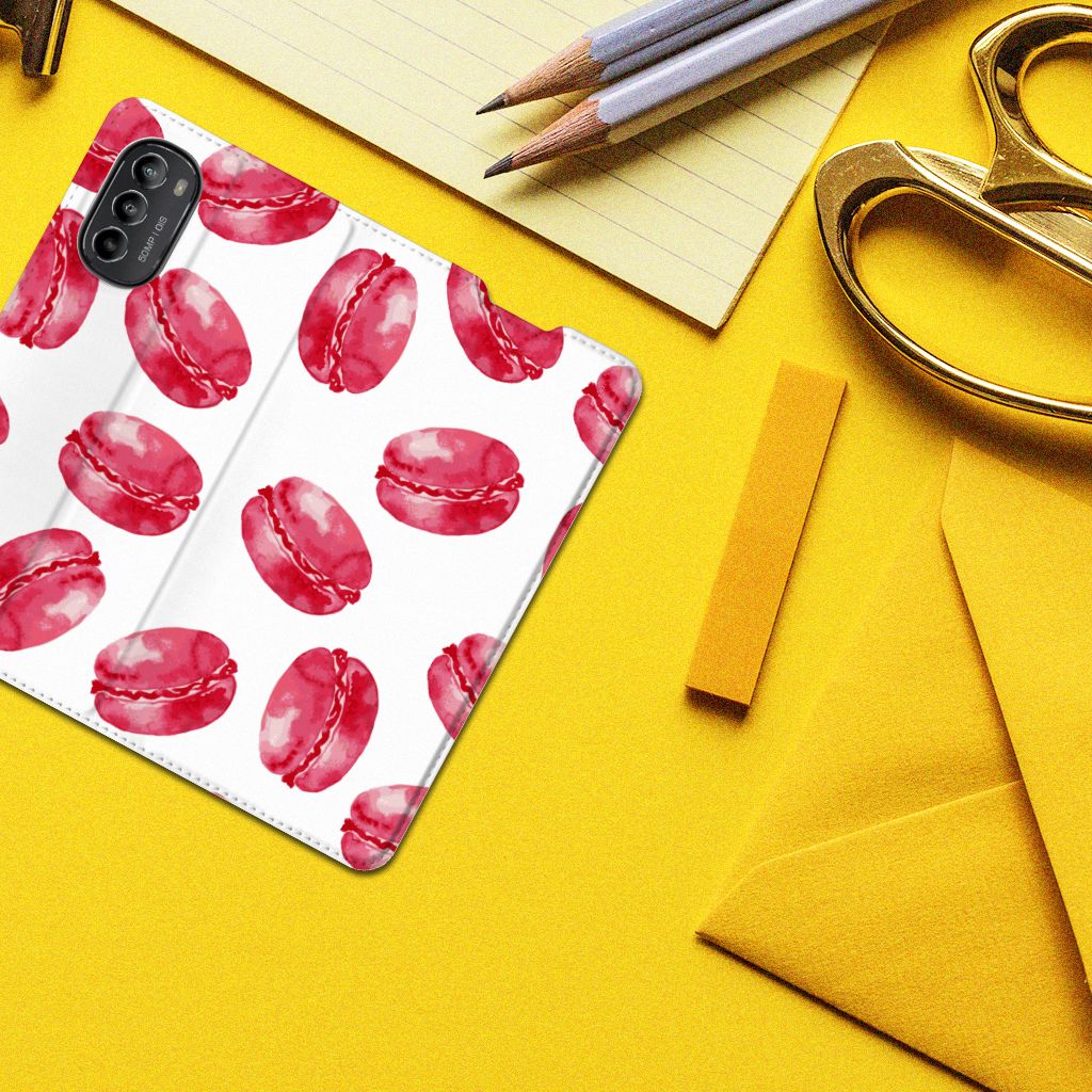 Dit stand hoesje met Pink Macarons is een zeer opvallende bescherming voor jouw smartphone. Macarons zijn Franse koekjes: kleine, rond en luchtig. Ze worden in veel verschillende smaken gemaakt, herkenbaar aan de verschillende kleuren zoals chocolade (donkerbruin), mokka (middenbruin), kersen (rood), pistache (groen), aardbei (roze), framboos (karmijn). Deze kleuren kun je net allemaal zien op dit fraaie design hoesje met roze macarons. Heb je altijd al een Motorola Moto G52 | Moto G82 Flip Style Cover willen hebben met roze macarons? Grijp dan nu je kans. Deze case heeft zeer veel goede eigenschappen, zoals 1 opbergvakje en een magnetische sluiting aan de binnenkant. Dit design hoesje met roze macarons wordt aan alle zijden bedrukt. De houder aan de binnenkant van het hoesje is van TPU. De case heeft ook een handige standaard.