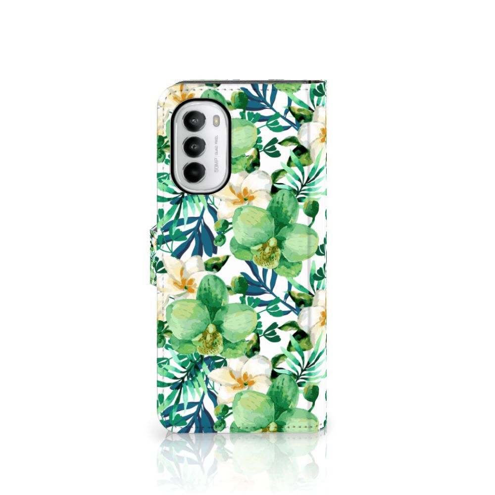 Motorola Moto G52 | Moto G82 Hoesje met ruimte voor drie pasjes Orchidee Groen
