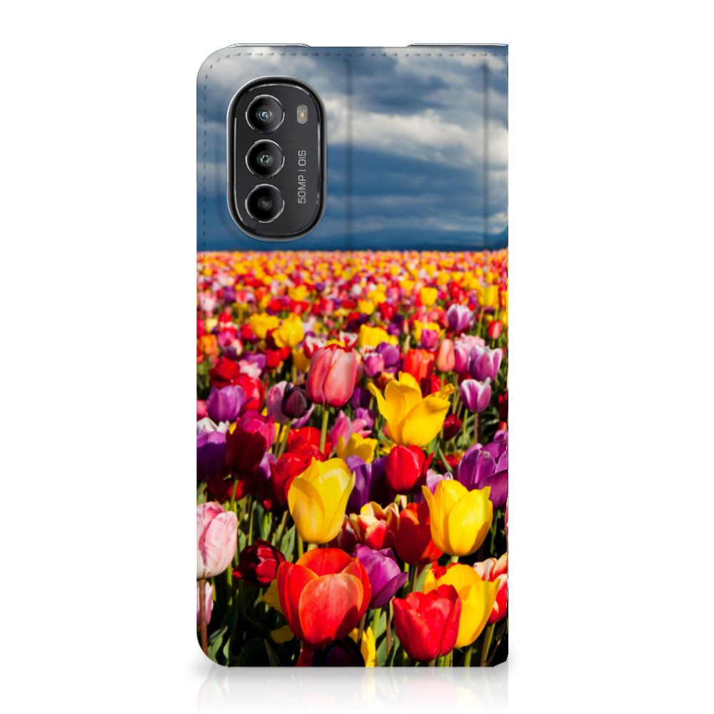 De tulp is een oer-Nederlandse bloem en heeft een lange geschiedenis. Deze Motorola Moto G52 | Moto G82 Smart Cover met Tulpen ziet er bijzonder kleurrijk uit. Dit fleurige smartphone hoesje geeft een bijzondere bescherming van jouw apparaat. Tulpen zijn ideaal voor een kleurrijk begin van het tuinseizoen. Iedereen wordt er vrolijk van om te zien hoe deze bloemen het voorjaar kleur geven en het begin van de warmere tijd van het jaar aankondigen. Dan kan het toch niet anders of jij wordt heel erg blij van deze stand case met tulpen? Deze populaire stand case heeft ruimte voor een pasje of briefgeld aan de binnenzijde en wordt magnetisch afgesloten. De houder aan de binnenkant is van TPU en de case wordt aan alle zijden bedrukt met tulpen. Je kunt ook zelf een stand case maken met daarop jouw favoriete bloemen.