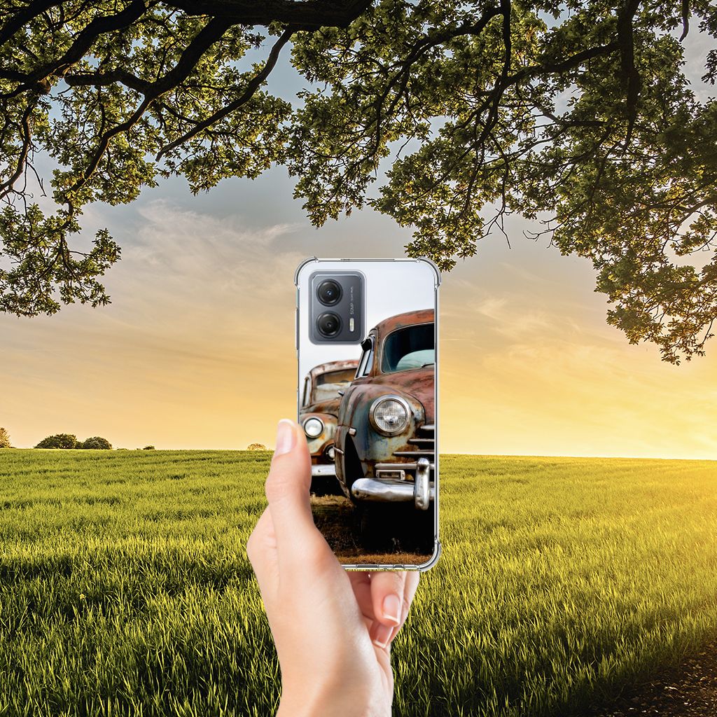 Ben je op zoek naar een uniek telefoonhoesje voor je Motorola Moto G53? Dan ben je bij B2C Telecom aan het juiste adres! Speciaal voor jou hebben we dit prachtige Vintage Auto design in onze collectie hoesjes opgenomen. Het design wordt bedrukt op een Anti-shock Hoesje met foto en is gemaakt van flexibel rubber. Het hoesje is perfect voor de actieve smartphonegebruiker door de opstaande randen/hoeken. Denk aan mensen die veel sporten, reizen of wandelen en net iets meer zekerheid willen als het op hun geliefde telefoon aankomt. Het design wordt alleen aan de bovenkant van het hoesje bedrukt en de randen blijven transparant. Aan de zijkanten zijn uitsparingen gemaakt waardoor je met gemak alle knoppen en poorten kunt bedienen. Wij adviseren om dit hoesje in combinatie met een screenprotector te gebruiken voor een langere levensduur van je telefoon. Wil je dit hoesje nog iets extra's geven? Voeg dan gratis je naam of een quote toe! Is dit design hoesje toch niet helemaal wat je zocht? Ontwerp dan zelf een hoesje in ons ontwerpprogramma.