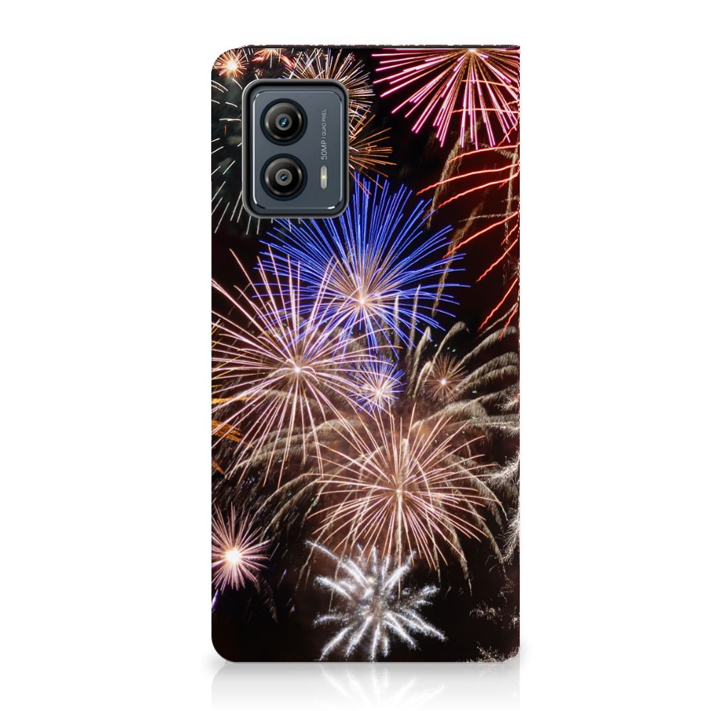 Deze Motorola Moto G53 Hippe Standcase levert gegarandeerd Vuurwerk op. Kijk alleen al eens naar de print van siervuurwerk, in zeer veel verschillende kleuren. Als je dit hoesje ziet kun je bijna niet geloven dat sommige gemeenten in Nederland overwegen om vuurwerk te verbieden. Er gebeuren weliswaar ongelukken mee, maar zoiets schitterends als op deze stand case met vuurwerk wil je toch gewoon niet missen. Bovendien beschermt dit hoesje jouw smartphone aan alle kanten. Alle zijden van deze case worden bedrukt en met een speciale standaard is het erg prettig om filmpjes te bekijken. De case wordt aan de binnenzijde met een magneet afgesloten en de houder aan de binnenzijde is van TPU. Onder alle omstandigheden zal deze case met 1 opbergvakje perfect functioneren, ook als je met nieuwjaar vuurwerk aan het afsteken bent. Zorg dan overigens wel dat je zelf ook voldoende afgeschermd bent van het vuurwerk.
