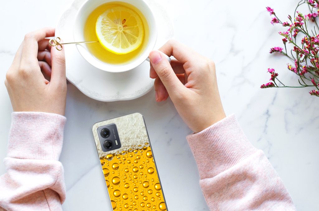Deze Motorola Moto G53 Siliconen Case met bierprint is iets voor de Bourgondiërs onder ons. Bierdrinkers zijn vaak in het uitgaansleven en op festivals actief, dus dan is het nodig dat jouw smartphone goed is beschermd. Ben jij iemand die in de nachtelijke uren tot leven komt, dan is deze tpu case met bierprint iets voor jou. Jouw smartphone is met name aan de achterzijde en zijkanten goed beschermd met deze tpu case met bierprint. De case met Bier op de bovenkant (zijkanten blijven doorzichtig) heeft opstaande randen aan de voorzijde. Fijn voor het scherm, mocht je smartphone uit je handen vallen tijdens het bier drinken. De wat ruige types hebben veel baat bij dit flexibele hoesje met bierprint. De case met jouw favoriete drankje wordt bedrukt met duurzame inkt.