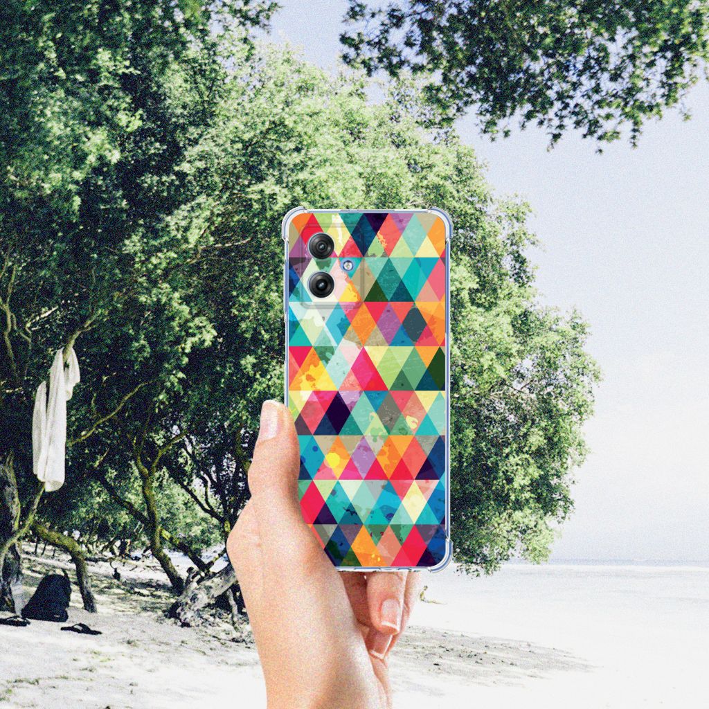 Ben je op zoek naar een uniek telefoonhoesje voor je Motorola Moto G54? Dan ben je bij B2C Telecom aan het juiste adres! Speciaal voor jou hebben we dit prachtige Geruit design in onze collectie hoesjes opgenomen. Het design wordt bedrukt op een Doorzichtige Silicone Hoesje en is gemaakt van flexibel rubber. Het hoesje is perfect voor de actieve smartphonegebruiker door de opstaande randen/hoeken. Denk aan mensen die veel sporten, reizen of wandelen en net iets meer zekerheid willen als het op hun geliefde telefoon aankomt. Het design wordt alleen aan de bovenkant van het hoesje bedrukt en de randen blijven transparant. Aan de zijkanten zijn uitsparingen gemaakt waardoor je met gemak alle knoppen en poorten kunt bedienen. Wij adviseren om dit hoesje in combinatie met een screenprotector te gebruiken voor een langere levensduur van je telefoon. Wil je dit hoesje nog iets extra's geven? Voeg dan gratis je naam of een quote toe! Is dit design hoesje toch niet helemaal wat je zocht? Ontwerp dan zelf een hoesje in ons ontwerpprogramma.