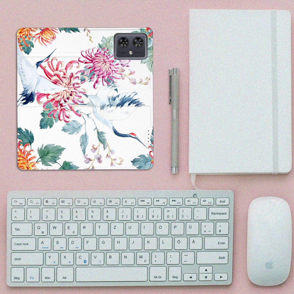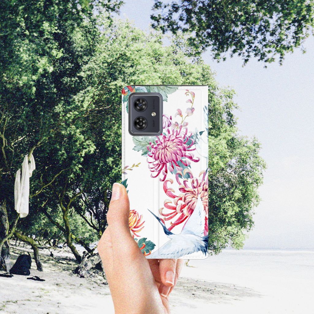 Verspreid over de hele wereld leven 19 soorten ooievaars. De spanwijdte – dat is de afstand van vleugeltip tot vleugeltip – van een volwassen ooievaar kan 2.50 meter bedragen. De gebieden waarin de ooievaar broedt, liggen in heel Europa, het Midden-Oosten, West- en Centraal-Azië en Noordwest-Afrika. Het ideale leefgebied van de ooievaar is een half open tot open landschap met veel afwisseling in grondgebruik en begroeiing. De begroeiing op dit design hoesje, in allerlei verschillende kleuren, zal niet alleen voor de ooievaars fraai zijn. Jij zult er zelf ook heel vrolijk van worden. Het in het oog springende design staat op een Hoesje maken. Deze case beschermt jouw Motorola Moto G54 aan alle kanten en beschikt over een 1 opbergvakje en een speciale standaard. Het hoesje wordt afgesloten met een magneet aan de binnenzijde. De houder aan de binnenzijde is van TPU. Alle zijden van de stand case worden bedrukt.