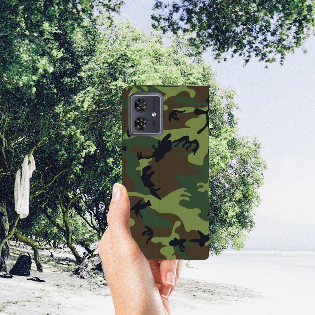 Voel je jezelf verbonden met het leger, dan zal deze Motorola Moto G54 Hoesje met Magneet je zeker bevallen. Het design hoesje beschikt namelijk over donkere camouflage kleuren. Deze worden vaak gebruikt door mensen die zich graag willen mengen in hun omgeving. Dit Army Dark hoesje is er dus voornamelijk in kleuren die in de natuur voorkomen, zodat je één wordt met je achtergrond. Beschermt de krijgsmacht volk en vaderland, dit hoesje in donkere camouflage kleuren zal jouw telefoon onder alle omstandigheden schadevrij houden. Met een hoesje in dit soort kleuren zal je niet zo snel opvallen. Wel is het echter een hele stoere case. Het design staat op een stand case. Deze case beschermt jouw telefoon aan alle kanten en beschikt over een 1 opbergvakje en een speciale standaard. Het hoesje wordt afgesloten met een magneet aan de binnenzijde. De houder aan de binnenzijde is van TPU. Alle zijden van de case worden bedrukt met donkere camouflage kleuren.