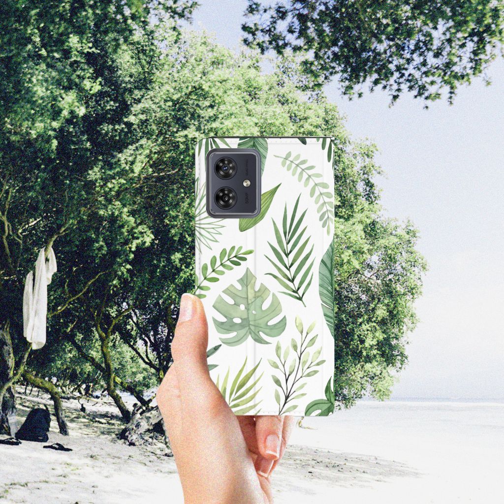 Je voelt je verbonden met de natuur als je kiest voor deze Motorola Moto G54 Smart Cover met print Leaves. De print bestaat uit verschillende groene bladeren en dit zorgt voor een fraai decoratief geheel. Met dit patroon van groene bladeren creëer je een frisse uitstraling voor jouw smartphone. Jij doet er verstandig aan om je telefoon te beschermen met dit design hoesje met groene bladeren, die staan op een stand case. Dit hoesje kenmerkt zich onder meer door het handige vakje aan de binnenzijde en de magnetische sluiting aan de binnenzijde. Voel jij jezelf gezond met een beeld van groene bladeren, dan is deze stand case met print een uitstekende optie. Het beschermt jouw telefoon aan alle zijden. Het TPU aan de binnenzijde klemt zich perfect om jouw smartphone. Kijk ook eens naar onze andere hoesjes met bladeren of misschien maak je zelf wel gewoon liefst je eigen hoesje met eigen foto’s van bladeren.
