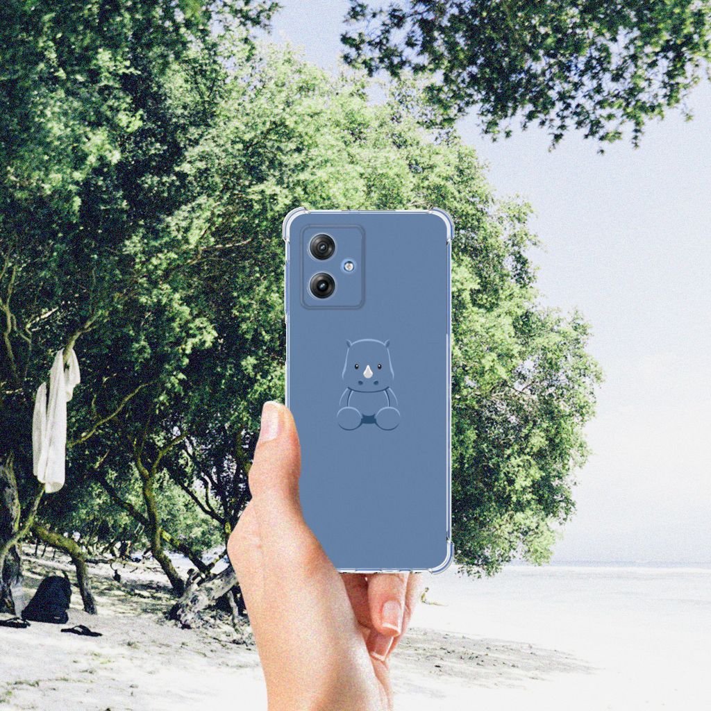 Ben je op zoek naar een uniek telefoonhoesje voor je Motorola Moto G54? Dan ben je bij B2C Telecom aan het juiste adres! Speciaal voor jou hebben we dit prachtige Baby Rhino design in onze collectie hoesjes opgenomen. Het design wordt bedrukt op een Stevig Bumper Hoesje en is gemaakt van flexibel rubber. Het hoesje is perfect voor de actieve smartphonegebruiker door de opstaande randen/hoeken. Denk aan mensen die veel sporten, reizen of wandelen en net iets meer zekerheid willen als het op hun geliefde telefoon aankomt. Het design wordt alleen aan de bovenkant van het hoesje bedrukt en de randen blijven transparant. Aan de zijkanten zijn uitsparingen gemaakt waardoor je met gemak alle knoppen en poorten kunt bedienen. Wij adviseren om dit hoesje in combinatie met een screenprotector te gebruiken voor een langere levensduur van je telefoon. Wil je dit hoesje nog iets extra's geven? Voeg dan gratis je naam of een quote toe! Is dit design hoesje toch niet helemaal wat je zocht? Ontwerp dan zelf een hoesje in ons ontwerpprogramma.