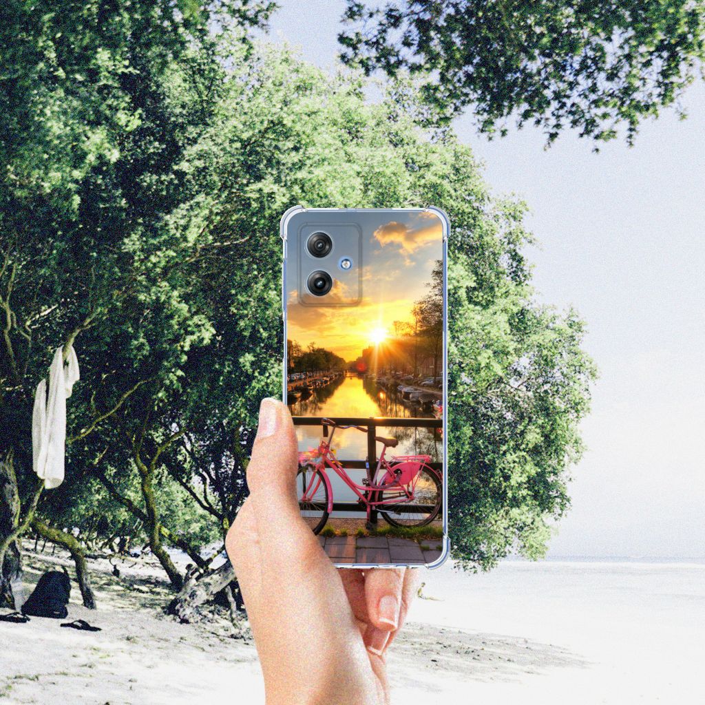 Ben je op zoek naar een uniek telefoonhoesje voor je Motorola Moto G54? Dan ben je bij B2C Telecom aan het juiste adres! Speciaal voor jou hebben we dit prachtige Amsterdamse Grachten design in onze collectie hoesjes opgenomen. Het design wordt bedrukt op een Telefoonhoesje met valbescherming en is gemaakt van flexibel rubber. Het hoesje is perfect voor de actieve smartphonegebruiker door de opstaande randen/hoeken. Denk aan mensen die veel sporten, reizen of wandelen en net iets meer zekerheid willen als het op hun geliefde telefoon aankomt. Het design wordt alleen aan de bovenkant van het hoesje bedrukt en de randen blijven transparant. Aan de zijkanten zijn uitsparingen gemaakt waardoor je met gemak alle knoppen en poorten kunt bedienen. Wij adviseren om dit hoesje in combinatie met een screenprotector te gebruiken voor een langere levensduur van je telefoon. Wil je dit hoesje nog iets extra's geven? Voeg dan gratis je naam of een quote toe! Is dit design hoesje toch niet helemaal wat je zocht? Ontwerp dan zelf een hoesje in ons ontwerpprogramma.