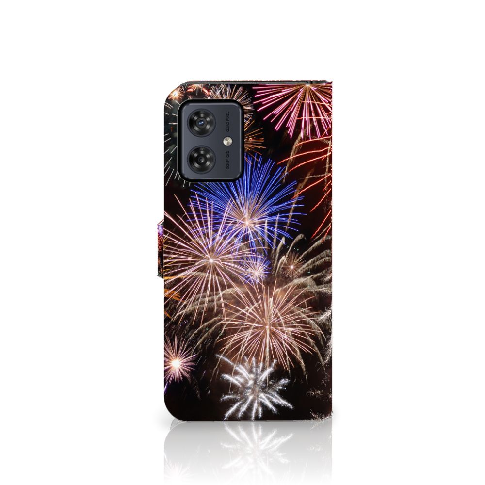 Dit Motorola Moto G54 Wallet Case met Pasjes levert gegarandeerd Vuurwerk op. Kijk alleen al eens naar de print van siervuurwerk, in zeer veel verschillende kleuren. Als je dit hoesje ziet kun je bijna niet geloven dat sommige gemeenten in Nederland overwegen om vuurwerk te verbieden. Er gebeuren weliswaar ongelukken mee, maar zoiets schitterends als op dit boekhoesje met vuurwerk wil je toch gewoon niet missen. Bovendien beschermt dit hoesje jouw smartphone ook nog eens aan alle kanten. Alle zijden van dit hoesje worden bedrukt. De case heeft een lipje aan de buitenzijde voor het afsluiten van de telefoon en de houder aan de binnenzijde is van TPU. Onder alle omstandigheden zal deze case met verschillende opbergvakjes perfect functioneren, ook als je met nieuwjaar vuurwerk aan het afsteken bent. Zorg dan overigens wel dat je zelf ook voldoende afgeschermd bent van het vuurwerk.