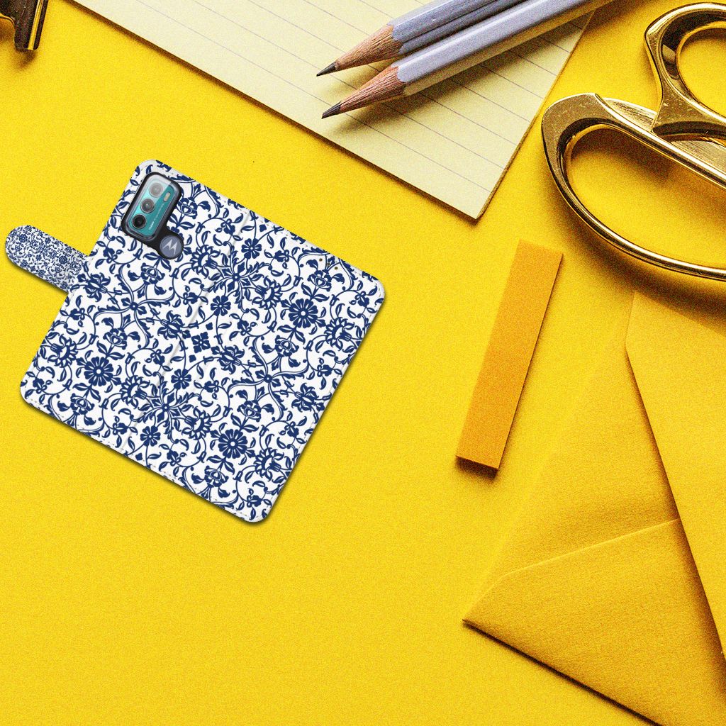 Motorola Moto G60 Hoesje met ruimte voor drie pasjes Flower Blue