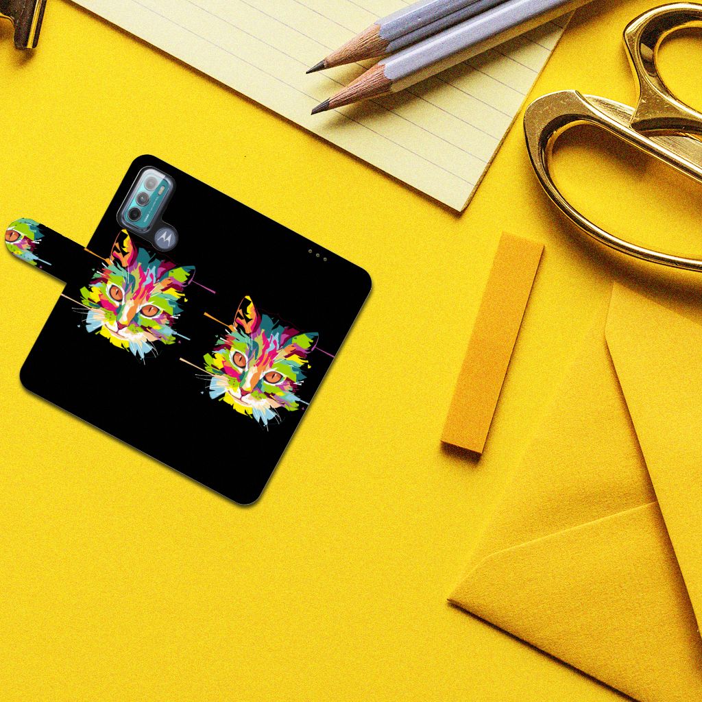 Motorola Moto G60 Leuk Hoesje met magnetische sluitclip Cat Color
