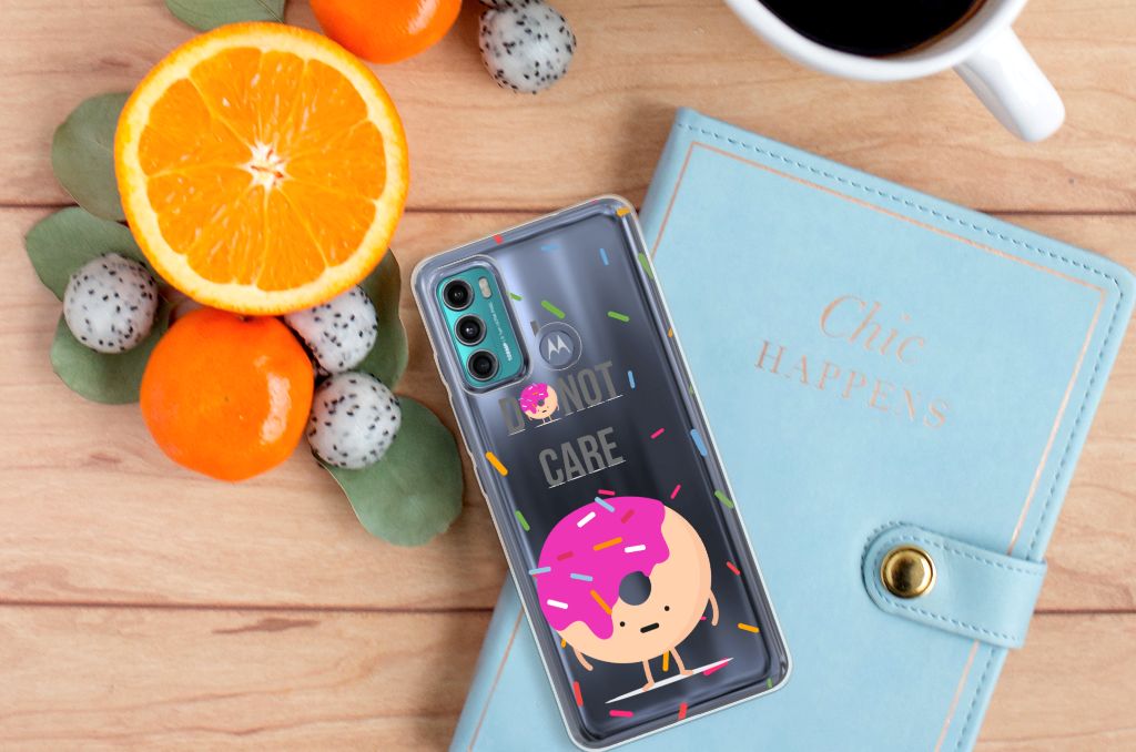 De cartoon met Donut op dit design hoesje geeft jouw smartphone een grappige en vrolijke uitstraling. De Motorola Moto G60 Siliconen Case zorgt ervoor dat je je schouders op zult halen als je telefoon een keer op de grond valt. Omdat er geen schade zal optreden kun jij je weg weer heel makkelijk vervolgen. De grappige Donut Care tpu case is nergens anders te krijgen. Het design is namelijk van de hand van onze eigen ontwerper. Daarnaast zal de case jouw smartphone goed beschermen. Een Donut Care tpu case is een zeer flexibel hoesje. Dit komt onder andere door het elastische en onbreekbare materiaal. Verder is de case zeer praktisch. Wat denk je bijvoorbeeld van de opstaande randen aan de voorkant. Verder beschikt de case ook nog eens over alle noodzakelijke uitsparingen. Ook kun je zelf je eigen unieke hoesje ontwerpen, met eigen cartoons, foto’s en teksten. Een Donut Care tpu case wordt alleen aan de bovenkant bedrukt. De randen blijven volledig doorzichtig.