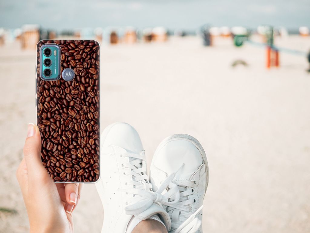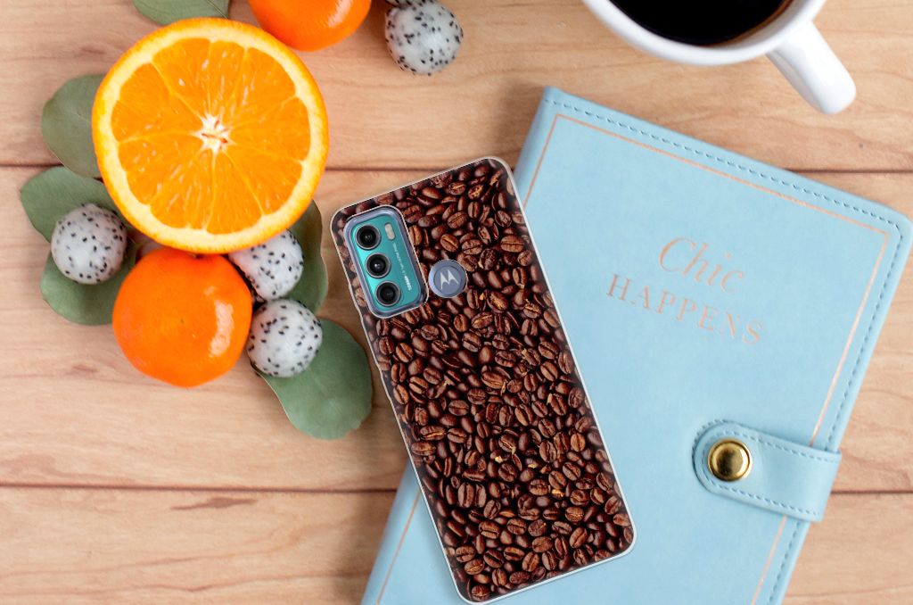 Als je de lekkerste koffie wilt dan kun je beste koffiebonen kopen. Koffie is namelijk het verst wanneer je de bonen zelf maalt. En wie houdt nou niet van de geur van vers gemaalde koffie? Daarom hebben wij de mooiste Koffiebonen op een smartphone hoesje gezet. Ben je barista, dan is dit het perfecte hoesje voor jouw werktelefoon. De koffiebonen staan op een tpu case. Dit is een zeer flexibel hoesje, dat altijd en overal in je broekzak past. Alleen de bovenkant van dit hoesje wordt door ons bedrukt, op zeer duurzame manier. Mensen die houden van een stevige espresso, kiezen voor dit degelijke design hoesje met bonen. Er staan geen bonen op de zijkanten van een Motorola Moto G60 Siliconen Case. Wel kun je zelf een eigen tekst toevoegen aan het design. Hoe mooi is dat?