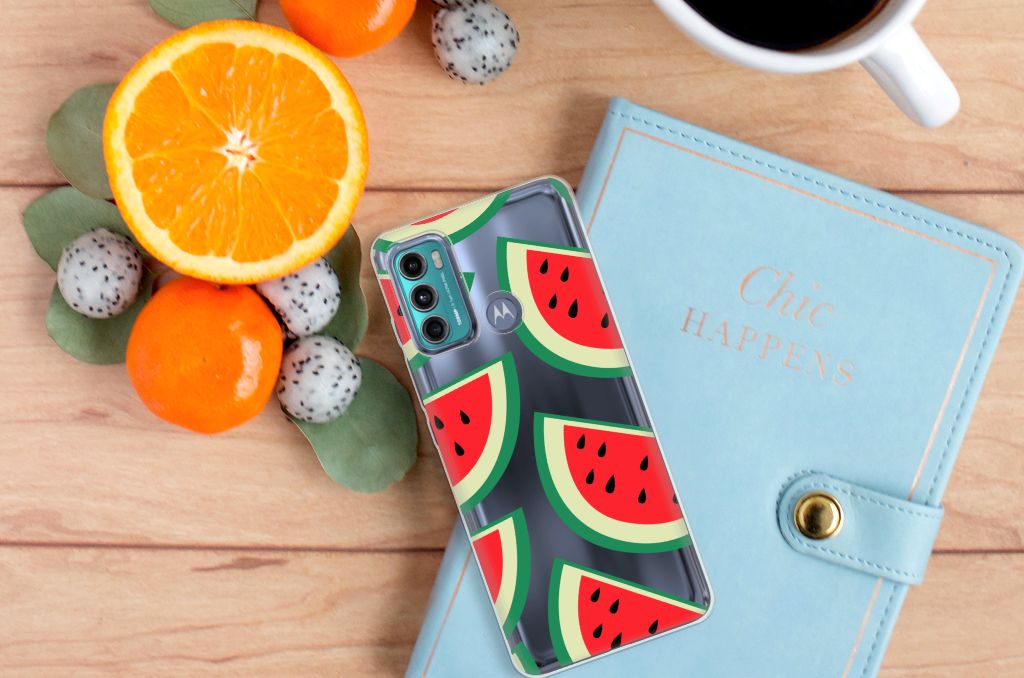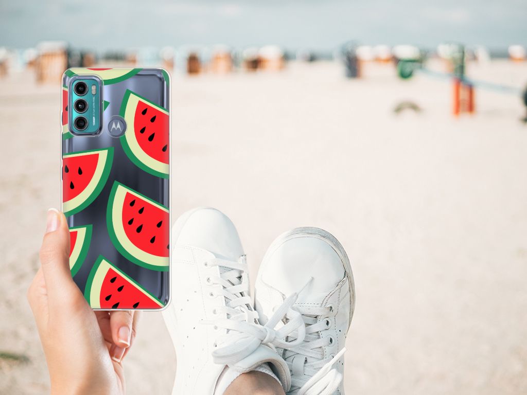 Watermeloenen zijn uitstekende dorstlessers, misschien dat je daarom juist in de zomermaanden extra enthousiast raakt van dit design hoesje Watermelons. Jij blijft gezond als je zo nu en dan een watermeloen neemt, jouw smartphone blijft in tact als je er deze Motorola Moto G60 Siliconen Case omheen doet. Deze tpu case wordt alleen aan de bovenkant bedrukt met watermeloenen is zeer flexibel. De randen van het hoesje blijven transparant. Je kunt ook kiezen voor andere soorten fruit op je hoesje. Kijk maar eens naar onze andere design hoesjes op onze website.