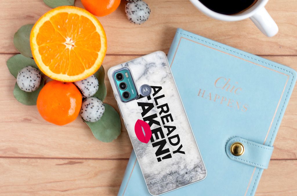 Stel dat je opdringende vrouwen of mannen van je af wil schudden op het moment dat je aan het feesten bent, omdat je al een partner hebt. Dan kun je dat met dit hoesje uitstekend duidelijk maken. Je Motorola Moto G60 neem je waarschijnlijk vaak ter hand, dus dan zal de boodschap als je over dit hoesje beschikt zeker weten overkomen. Ook in het openbaar vervoer zal dit hoesje ervoor zorgen dat je minder snel versierd wordt door het andere geslacht. Als je vrijgezel bent en op zoek naar gezelschap, dan kun je beter kiezen voor een ander hoesje uit ons ruime en gevarieerde assortiment. Het design Already Taken White staat op een Siliconen hoesje met naam. Dit hoesje wordt alleen aan de bovenkant bedrukt en is zeer flexibel. De randen van het hoesje blijven transparant.