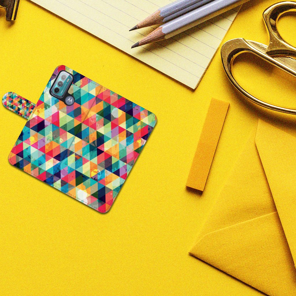 Motorola Moto G60 Telefoon Hoesje met ruimte voor 3 pasjes Geruit