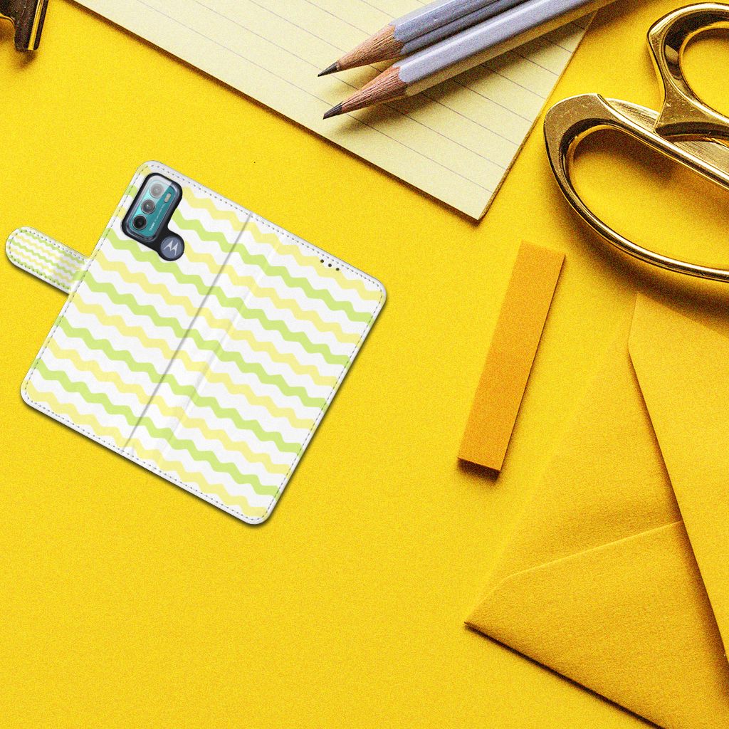 Dit Waves Yellow design hoesje met licht groene en gele golven is speciaal ontworpen voor jouw telefoon. We hebben een vleugje lichtgeel toegevoegd, zodat de case er een beetje spannender en leuker uitziet. Dit licht groene hoesje met licht groene golven ziet er oogstrelend uit. Het wordt in ons eigen magazijn bedrukt, in zeer goede kwaliteit inkt. Wij kunnen dus een zeer duurzaam hoesje met licht groene golven garanderen. Dit hele mooie Motorola Moto G60 Telefoon Hoesje heeft vele extra’s. Is dit licht groene design hoesje je op het lijf geschreven? Grijp dan nu je kans. Een boekhoesje met lichtgroene golven beschermt jouw telefoon aan alle zijden en beschikt over meerdere houders voor pasjes en briefgeld. De case sluit perfect af met het magnetisch lipje aan de buitenkant. De houder aan de binnenzijde is van het flexibele TPU. Alle zijden van het licht groene hoesje met golven worden bedrukt, inclusief het lipje.