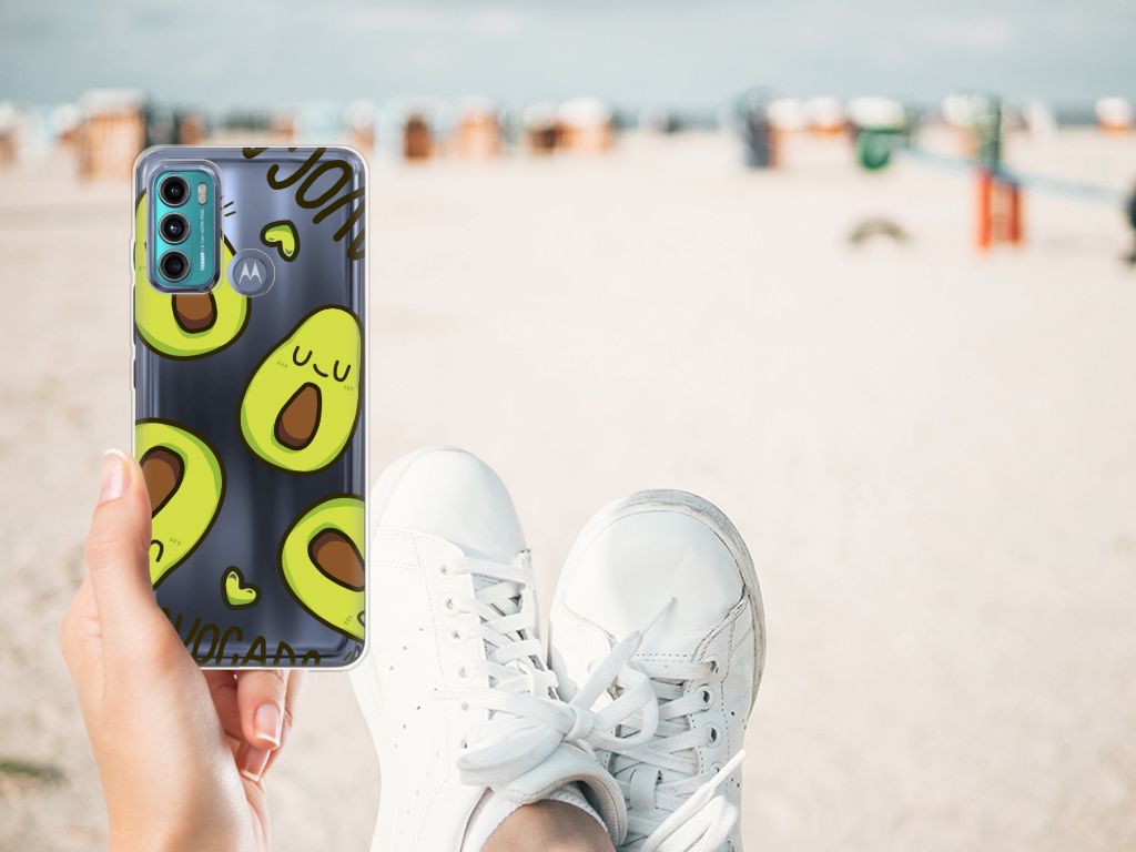 Avocado’s zijn niet alleen heel erg goed voor je, ze zijn ook super leuk op je telefoonhoesje. Dit unieke design vol schattige avocado’s zal jou en iedereen om je heen meteen opvrolijken. Nog een voordeel van dit design: deze avocado’s bederven nooit! Dit leuke Avocado Singing-ontwerp staat op een Telefoonhoesje met Naam voor de Motorola Moto G60. Met deze vrolijke groene vruchten op je hoesje val jij zeker op. TPU is flexibel en onbreekbaar. Zo is je telefoon aan de achterkant en de randen heel goed beschermd. De case is aan de bovenkant bedrukt, de randen blijven transparant. Het TPU-hoesje is perfect te combineren met een screenprotector, zo zijn je telefoon en je beeldscherm perfect beschermd.